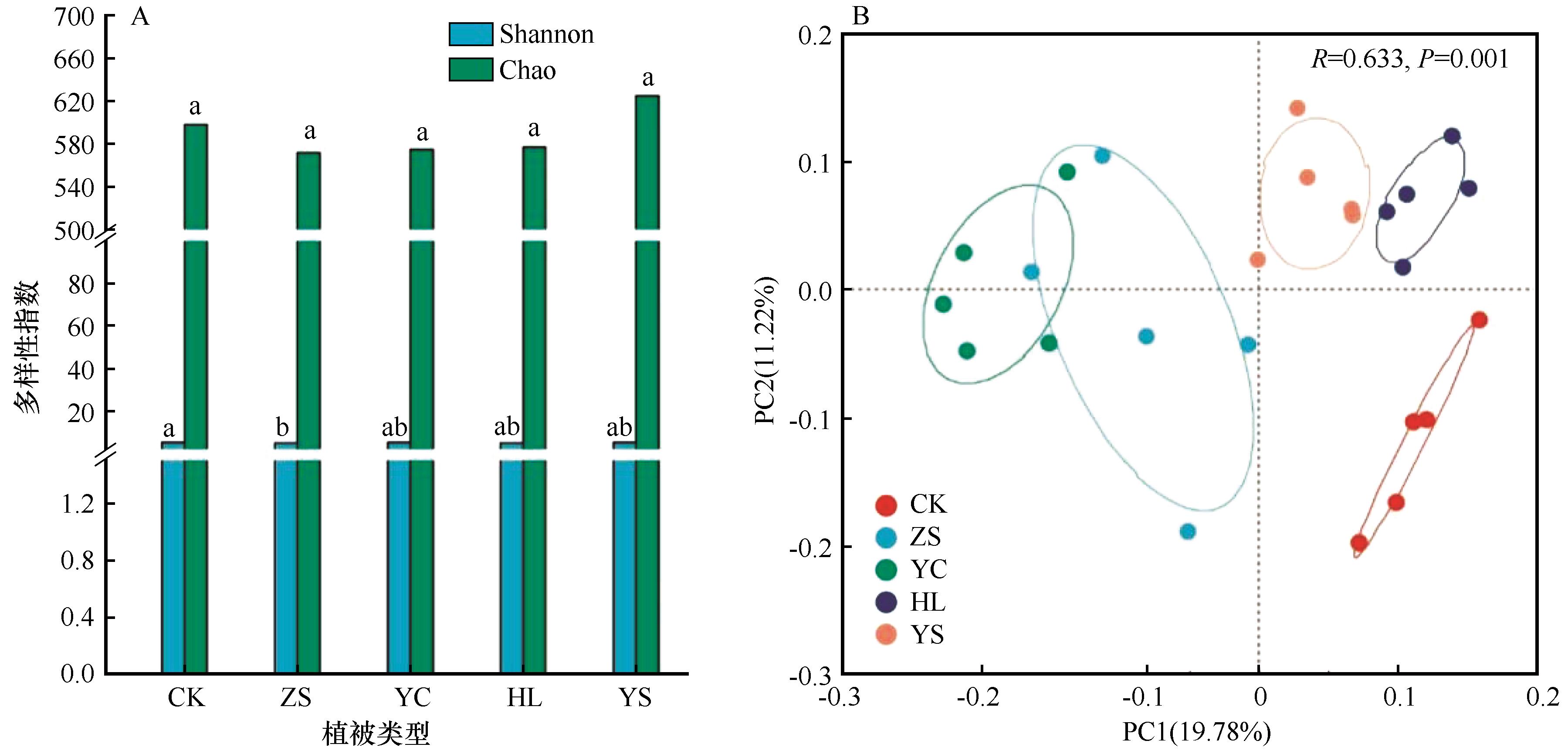 Key words: Hunshandake Sandy Land, vegetation restoration, bacterial community, function prediction, high-throughput sequencing