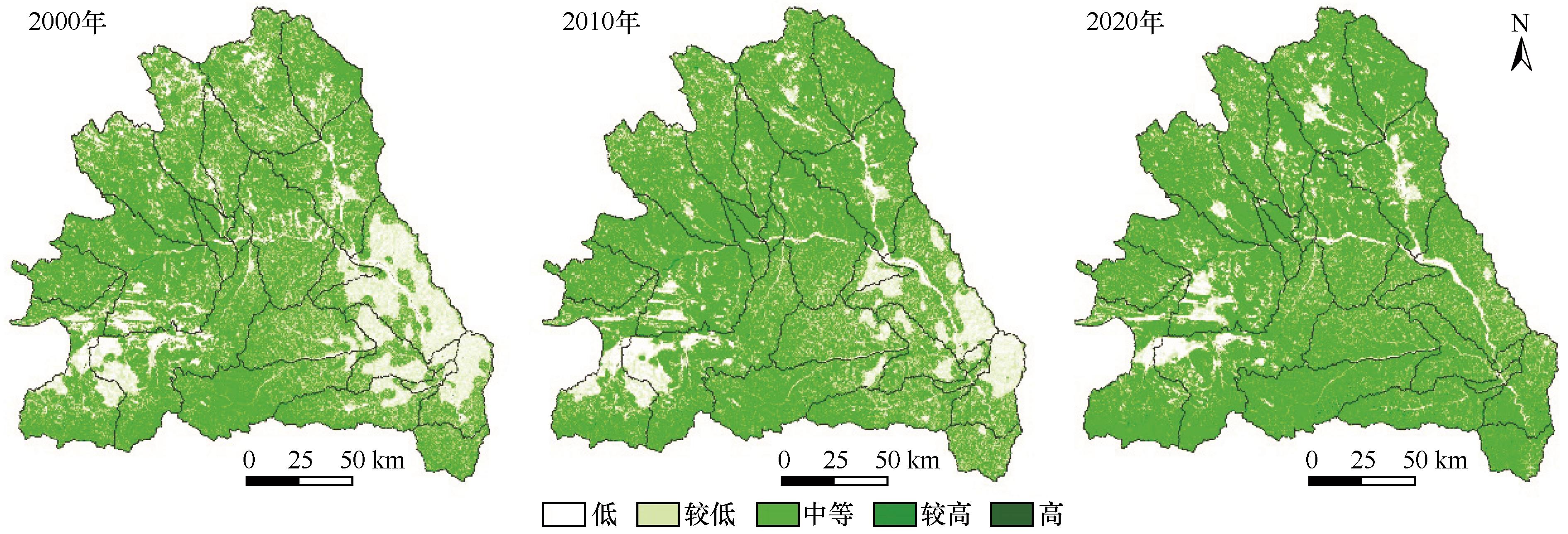 图3 2000—2020年无定河流域生境质量空间分布注:基于陕西测绘地理信息局标准地图服务标准地图(审图号:陕S(2021)023号)制作,底图边界无修改
