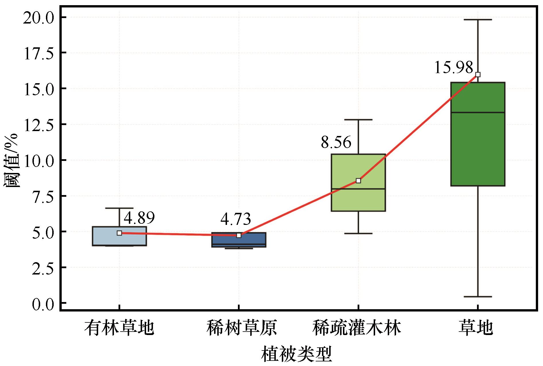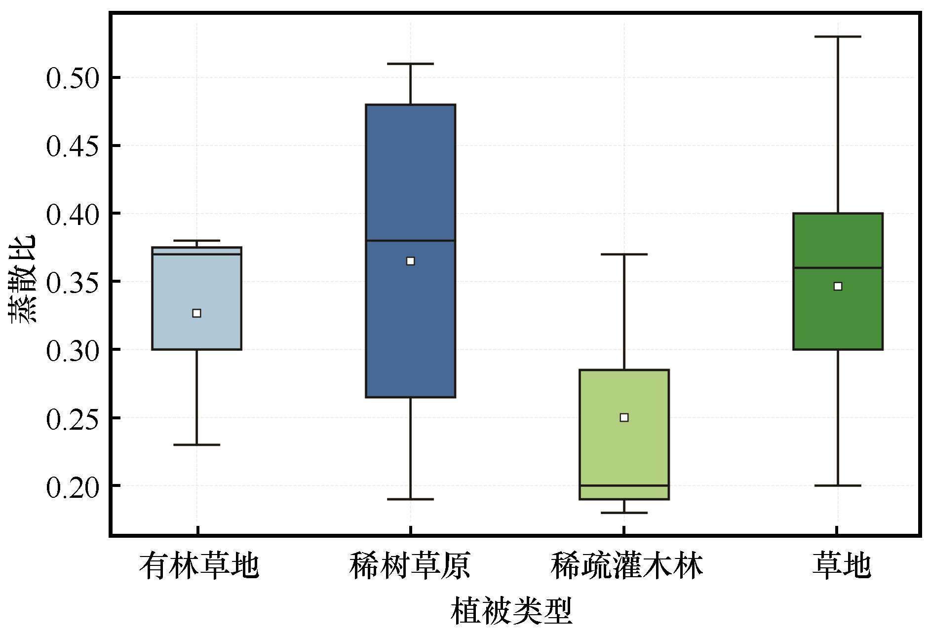 To investigate the seasonal dynamics of evapotranspiration fraction (EF) in typical vegetation types and its response mechanisms to soil moisture and meteorological factors in arid and semi-arid regions, this study utilized long-term observational data from 24 FLUXNET sites representing four vegetation types (woody savanna, savanna, open shrubland, and grassland). Classical statistical methods were employed to quantify EF characteristics and its influencing factors, while threshold regression models combined with the Akaike Information Criterion (AIC) were applied to identify soil moisture thresholds and optimal fitting models. The results demonstrated that the monthly mean EF in arid and semi-arid regions was 0.31, with the highest value observed in woody savanna (0.36) and the lowest in open shrubland (0.21), indicating energy partitioning dominated by sensible heat flux. EF exhibited pronounced seasonal variability, with open shrubland showing the strongest fluctuations (Cv = 0.37). Soil moisture emerged as the key regulatory factor for EFr = 0.66, P < 0.05), with nonlinear threshold effects: the response patterns of EF to soil moisture diverged significantly before and after critical thresholds (4.73%-15.98%), and the "stepwise segmented" model was consistently identified as the optimal fitting model.