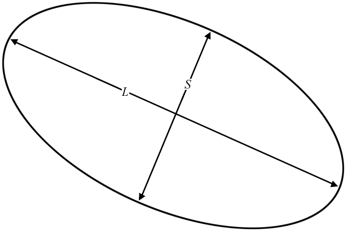 The relationship between the long axes (L) and short axes (S) of dome dune