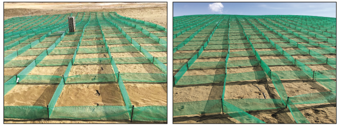 实地风沙流对比观测表明,PLA网格沙障具有优异的防沙效果。