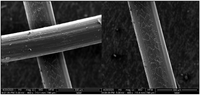 The surface structure of the initial polylacticacid sand barrier scanned by electron microscope