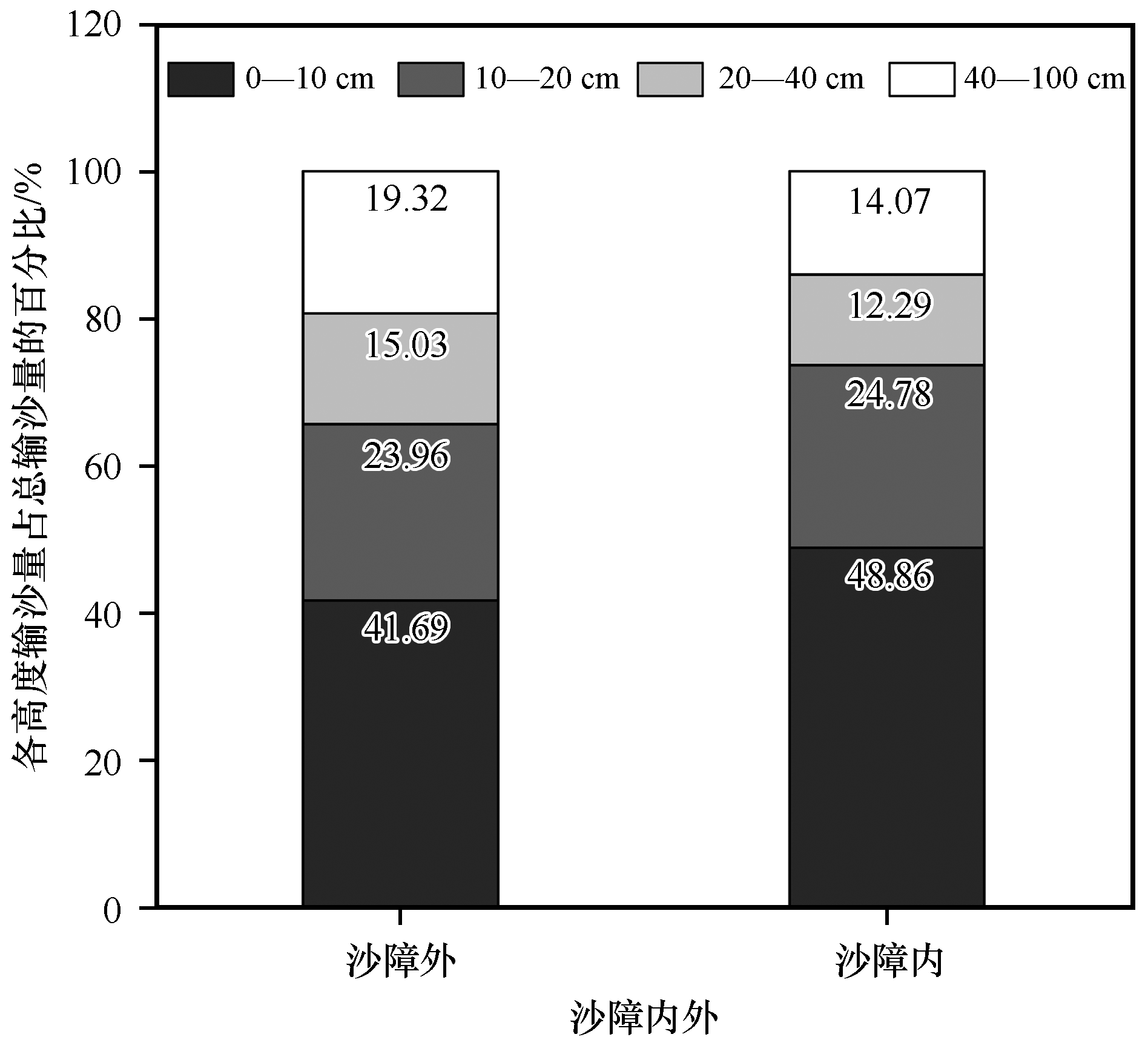 图11 沙障内外各高度输沙量占总输沙量的百分比 |