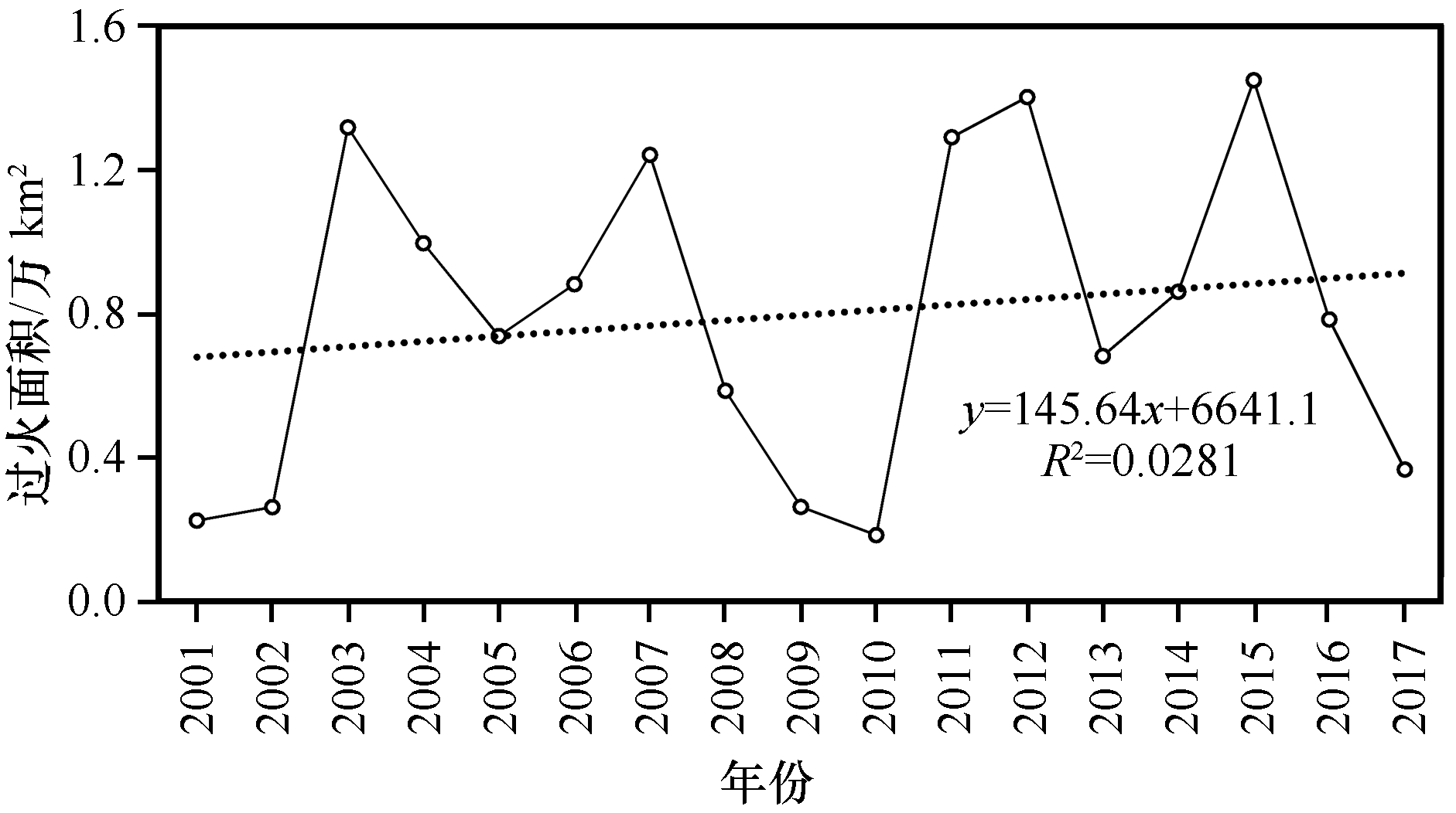 图3 2001—2017年蒙古东部过火面积年际变化 |