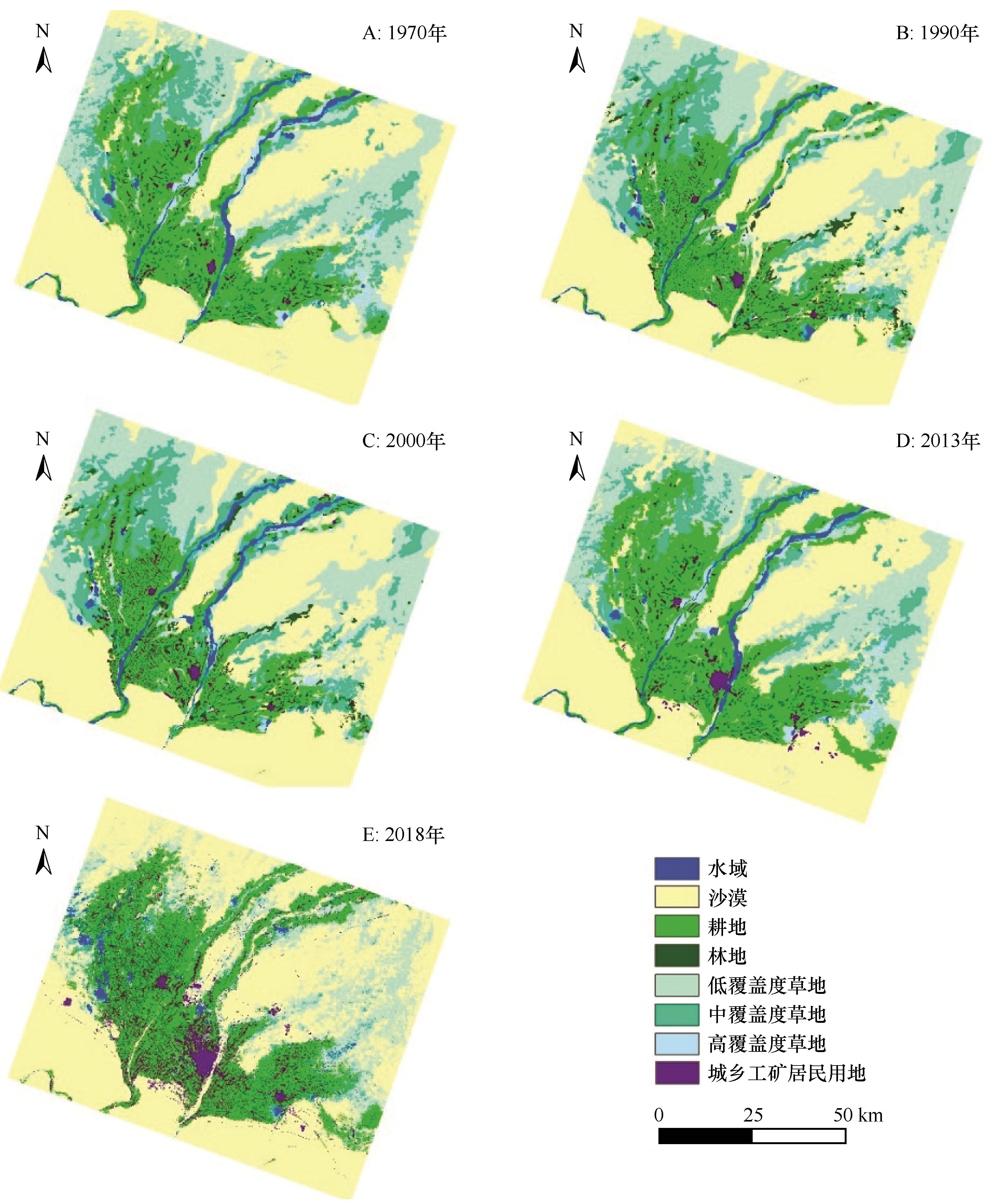图3 1970—2018年和田绿洲土地利用/覆盖时空变化 |