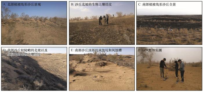 ... [30-33],那么VLDs形态变化在沙丘内部构造特征上是否有所反映?在VLDs的形成演化过程中,沙丘内部构造组合是否发生变化?针对这些问题,本文选择古尔班通古特沙漠东南部交通便利的区域,以大面积分布的固定半固定的植被线形沙丘(VLDs)为研究材料,在野外考察基础上,主要采用GPR技术探测获取不同形态线形沙丘内部沉积构造的空间变化信息,结合区域自然地理特征综合分析,探讨不同发育阶段植被线形沙丘沉积构造组合的演化序列,以期为区域土地沙漠化中长期变化趋势监测提供参考依据. ...