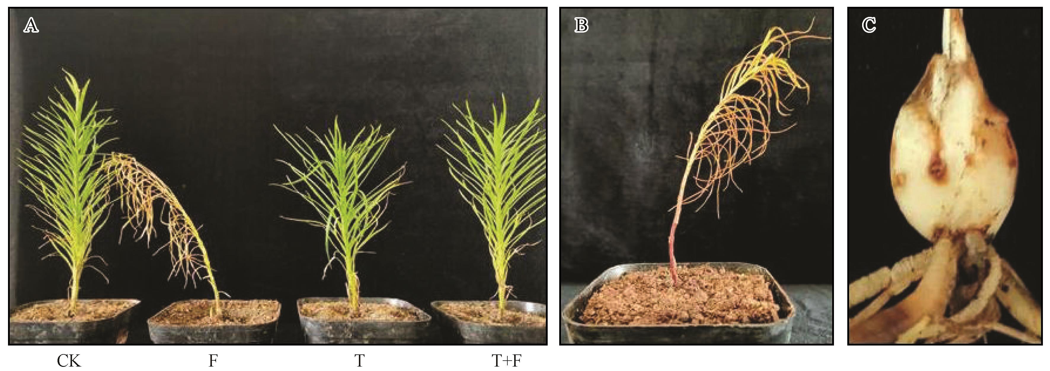 Fig.3 Effects of exogenous aconitic acid treatment on the occurrence of Fusarium oxysporum and plant growth of Lanzhou lily |