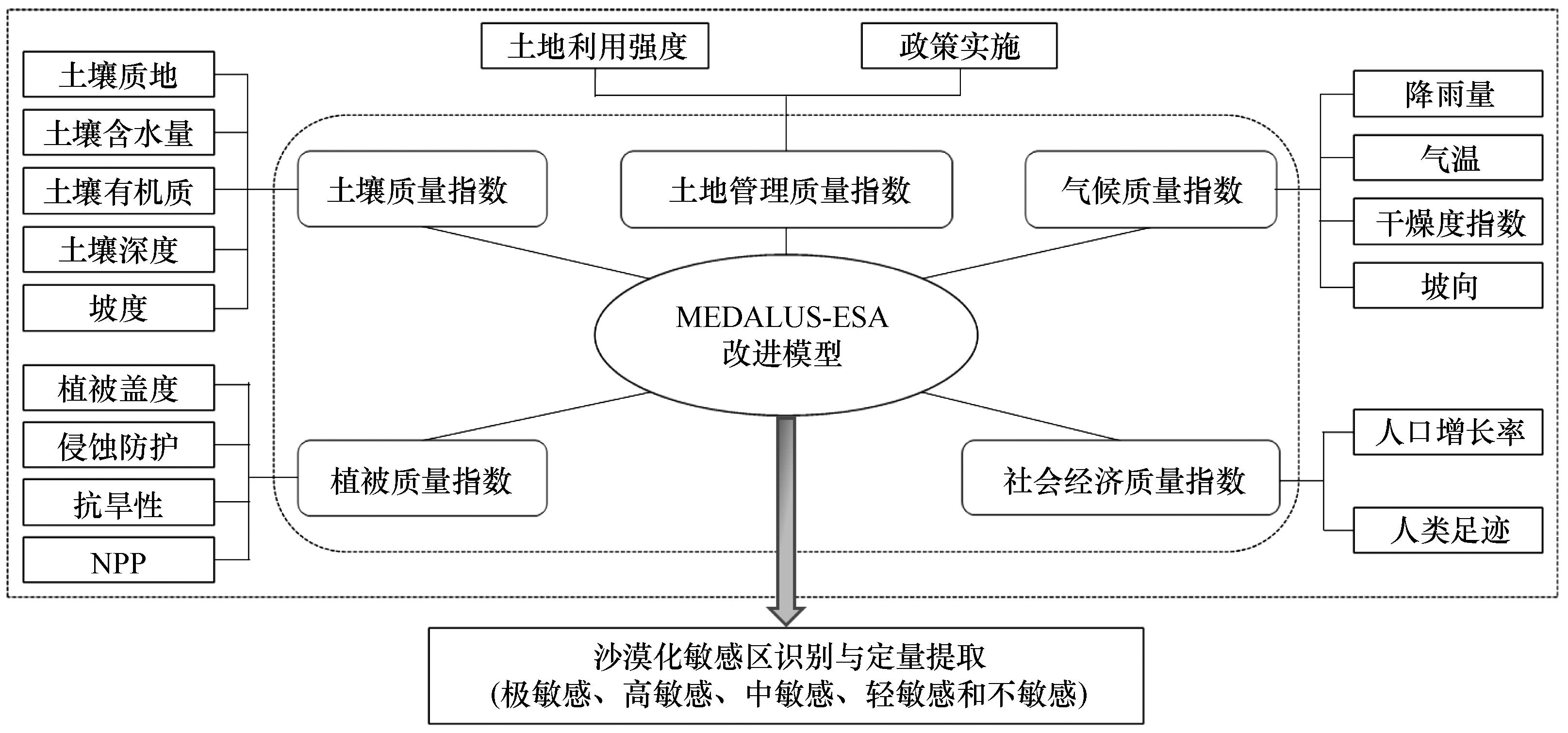 | 图2 改进后MEDALUS模型框架及沙漠化敏感区识别流程 |