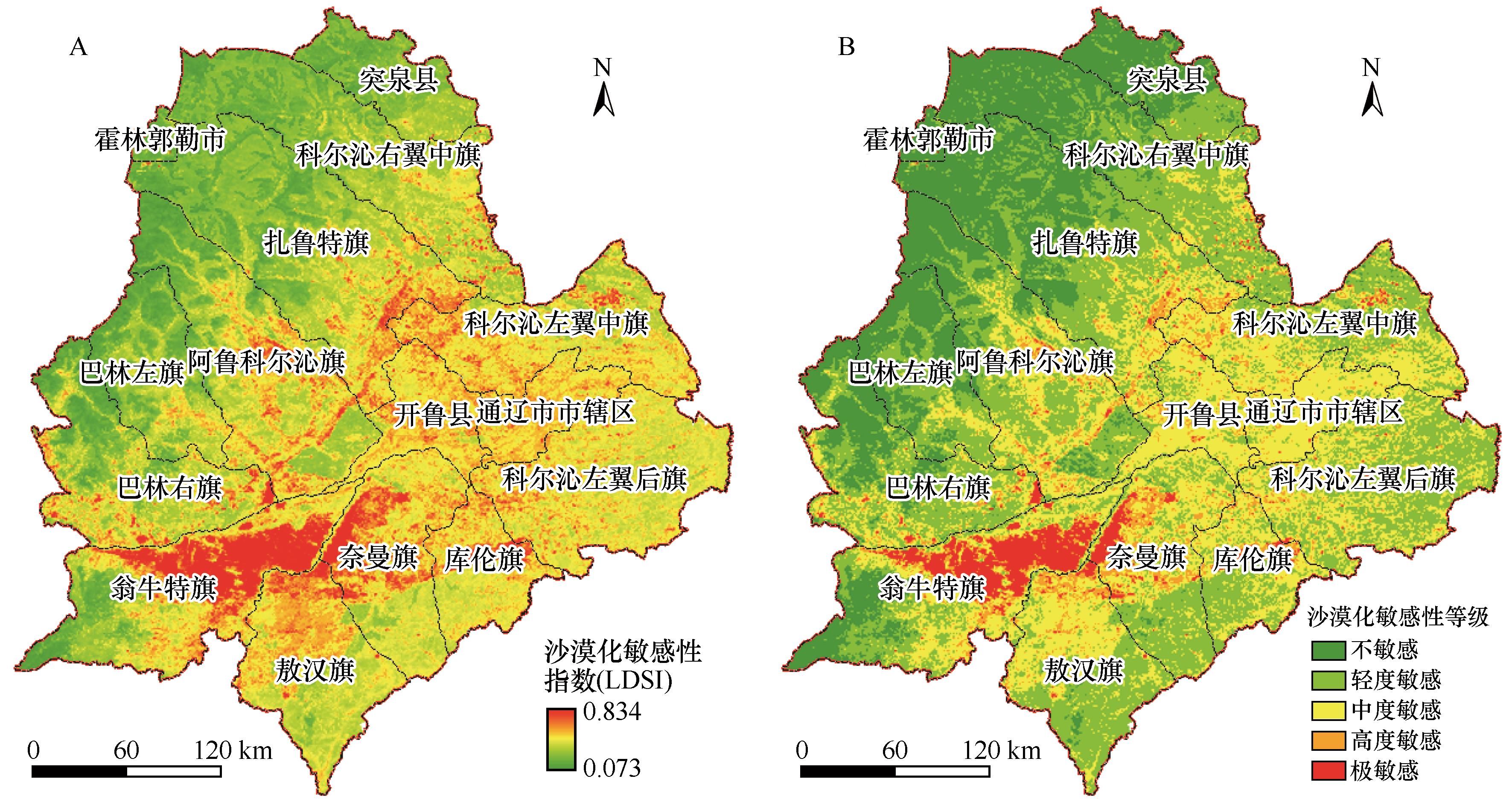 | 图4 科尔沁沙地土地沙漠化敏感性空间分布 |