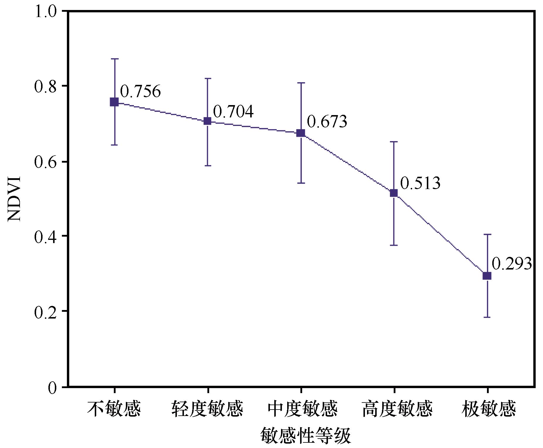 | 图6 不同沙漠化敏感性等级NDVI均值与标准差 |