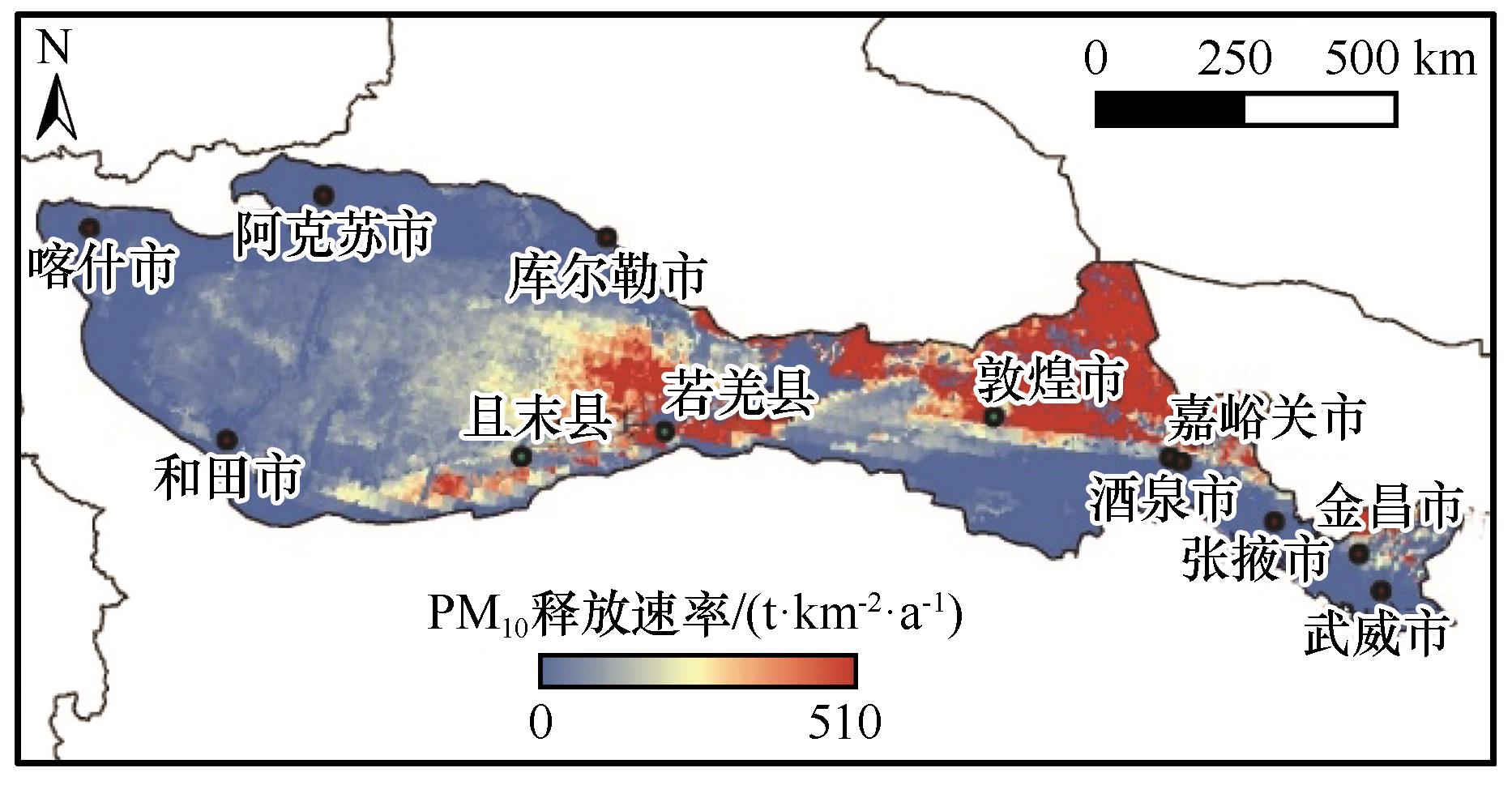 | 图8 2000—2023年研究区多年平均PM10释放速率空间分布 |