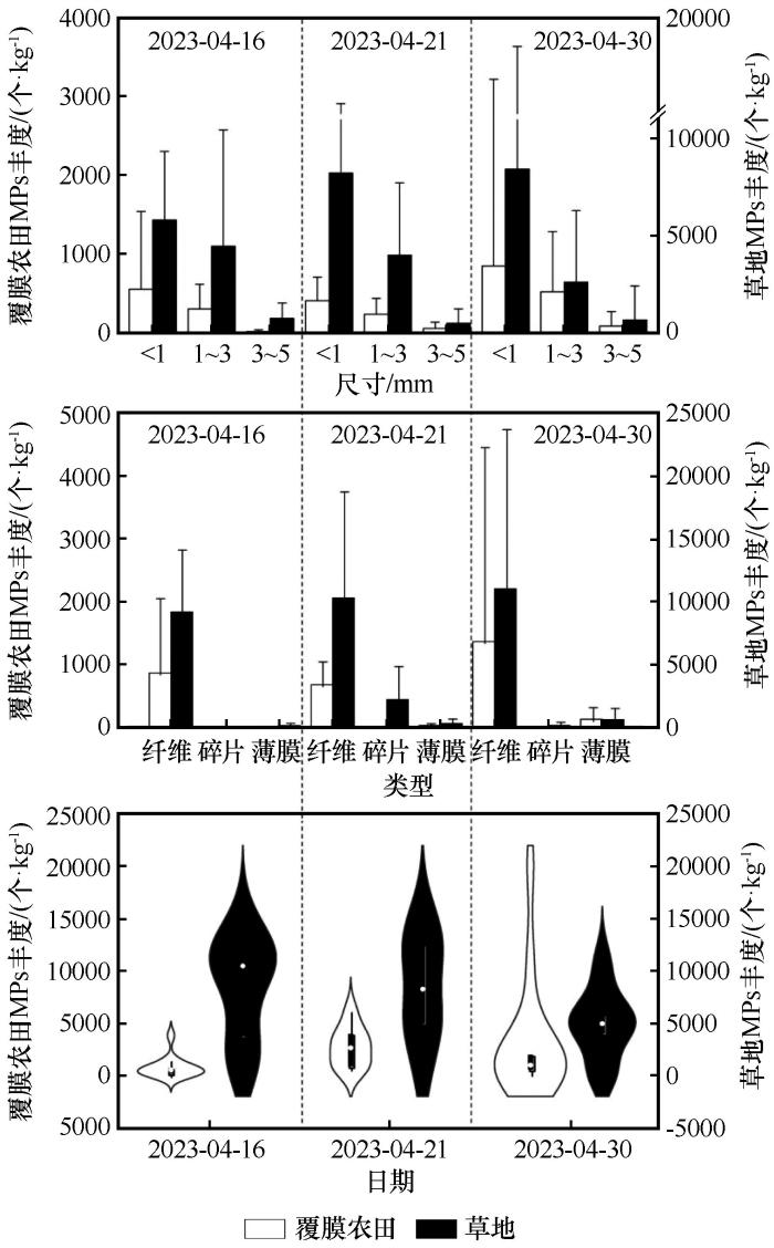 覆膜农田和草地风蚀物MPs类型及尺寸富集特征