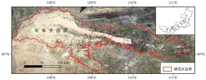 研究区为内蒙古西部鄂尔多斯市库布齐沙漠(图1 ),地理位置位于39.787°—40.913°N、107.059°—111.368°E,总面积18 643 km²。研究区地处鄂尔多斯高原北缘,地跨杭锦旗、达拉特旗、准格尔旗,沙丘高10~60 m,平均海拔约1 200 m。库布齐沙漠主要气候属于温带大陆性季风气候,昼夜温差大,东部沙漠属于半干旱区,雨量相对较多;西部沙漠属于干旱区,年均气温较高,雨量较少,年降水量仅为80~160 mm,年蒸发量大于2 000 mm。库布齐沙漠不同地区降水量不同,东部的半干旱地区属于干旱草原类型,土壤肥力较高,主要的植被类型有针茅(Stipa kemenzii )、冷蒿(Artemisia frigida )等多年生禾本科植物;西部与西北部半灌木成分增加,建群种为狭叶锦鸡儿(Caragana stenophylla )、红砂(Reaumuria soongarica )、沙冬青(Ammopiptanthus mongolicus )等强旱生植物;北部河漫滩植被以盐生草甸和白刺(Nitraria tangutorum )沙堆零星分布,地下水较为丰富。近些年随着人为因素干预影响,大批固沙植物通过人工种植及飞播的方式进入库布齐沙漠,以沙柳(Salix psammophila )、柠条(Caragana korshinskii )、梭梭(Haloxylon ammodendron )、花棒(Hedysarum scoparium )等耐旱灌木为主,根系发达,防风固沙效果显著,核心治理区植被覆盖率从不足3%提升至48%~53%[27 ] 。