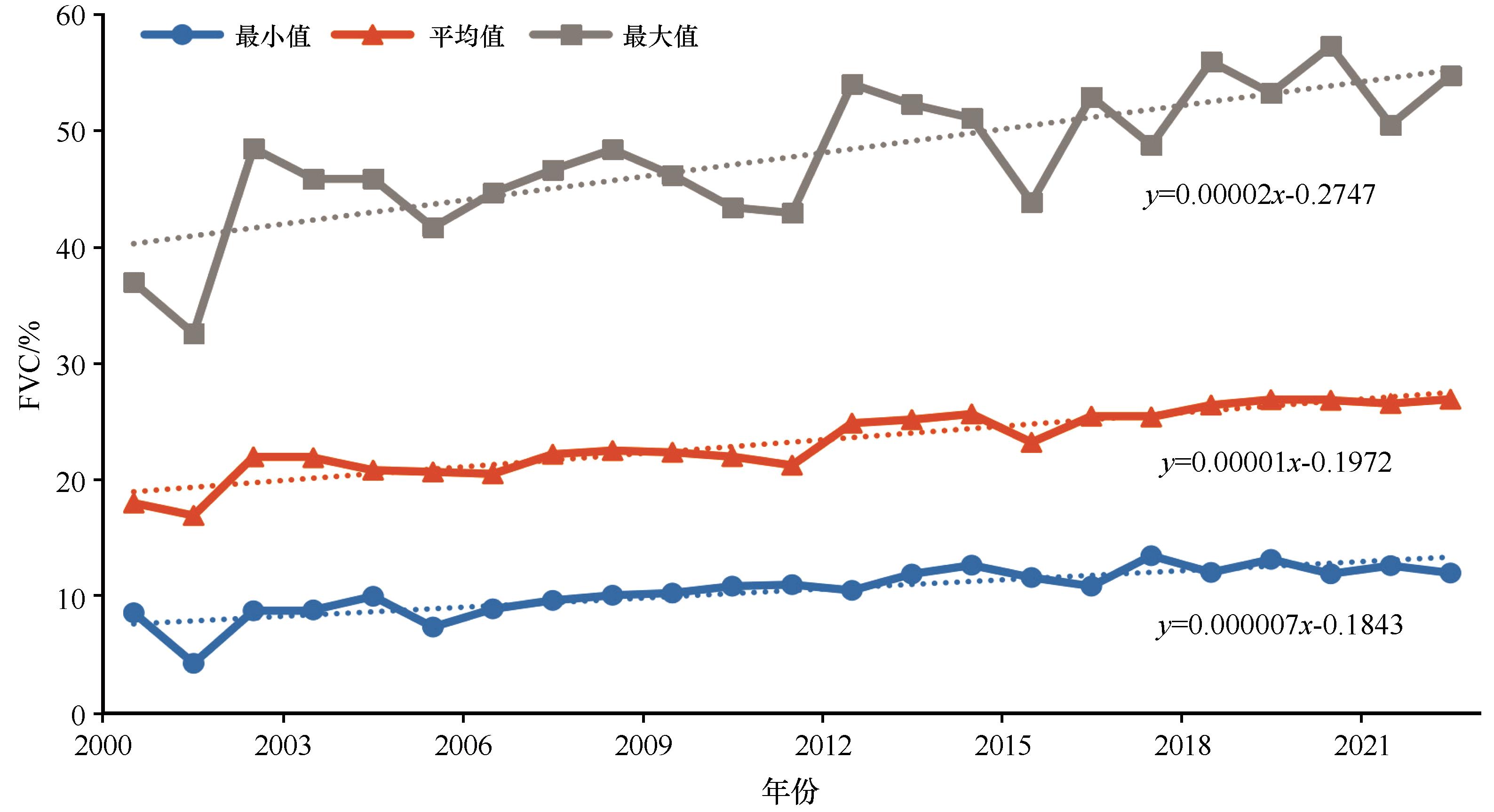 | 图2 2000—2022年平均植被覆盖度趋势 |