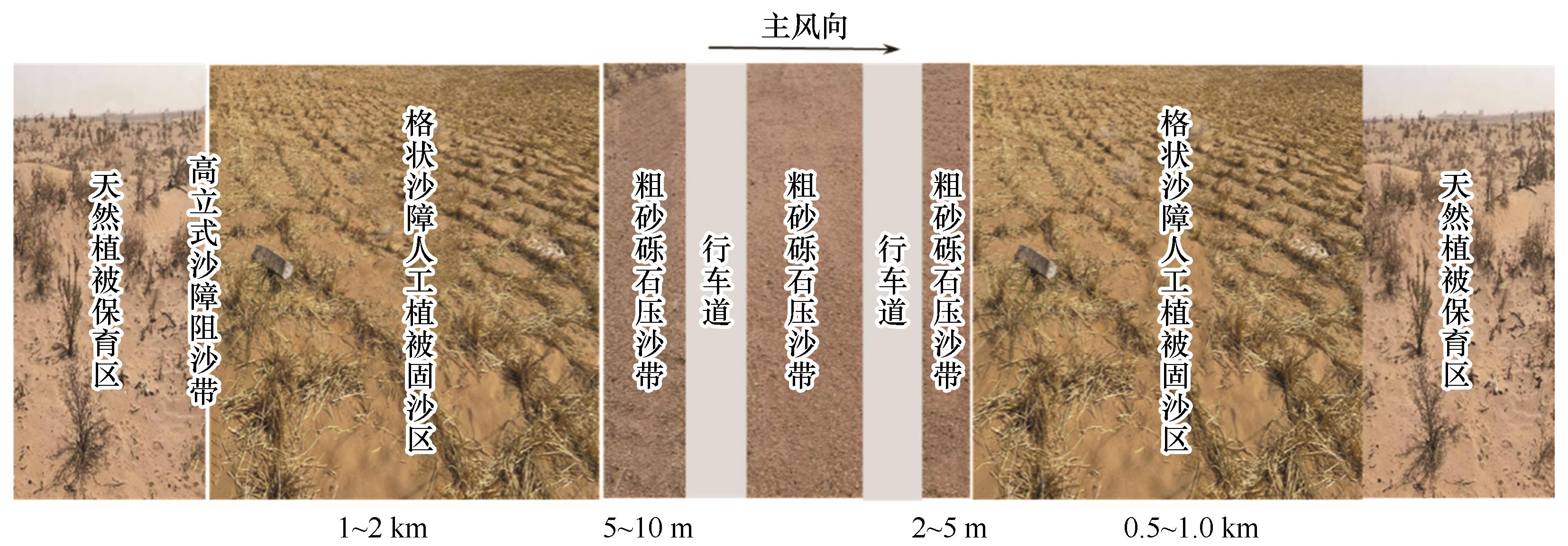 | Fig.7 The sand barrier-fixed-transportation system on both sides of the major road |