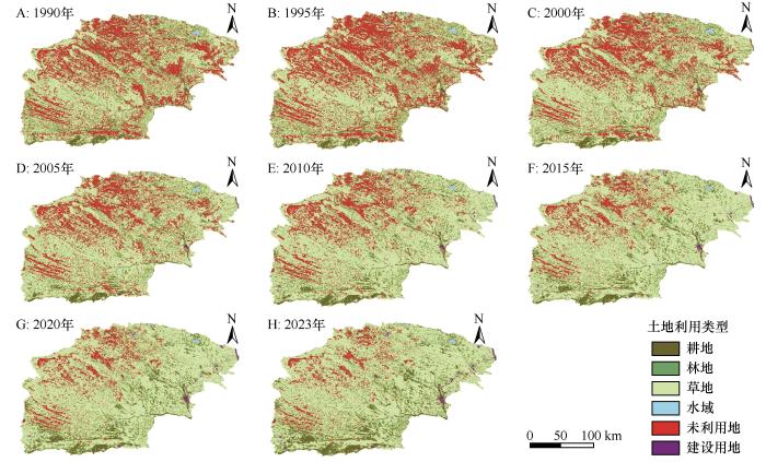 本研究所采用的数据包括1990、1995、2000、2005、2010、2015、2020、2023年土地利用数据,数据来源于中国科学院资源环境数据平台(