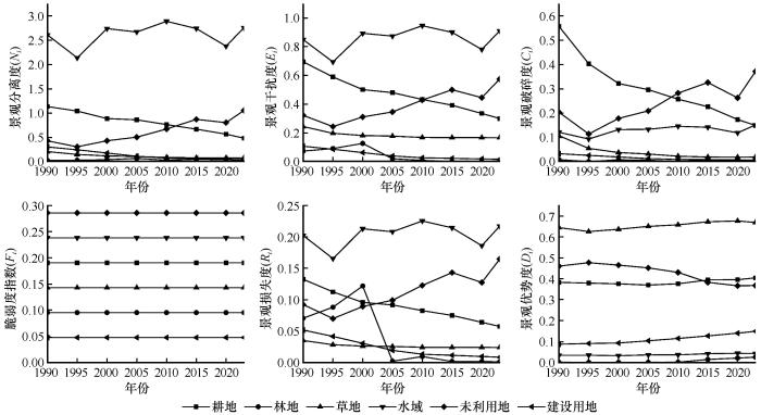 式中:ni 为景观类型i的斑块数;Ai 为景观类型i的总面积。
