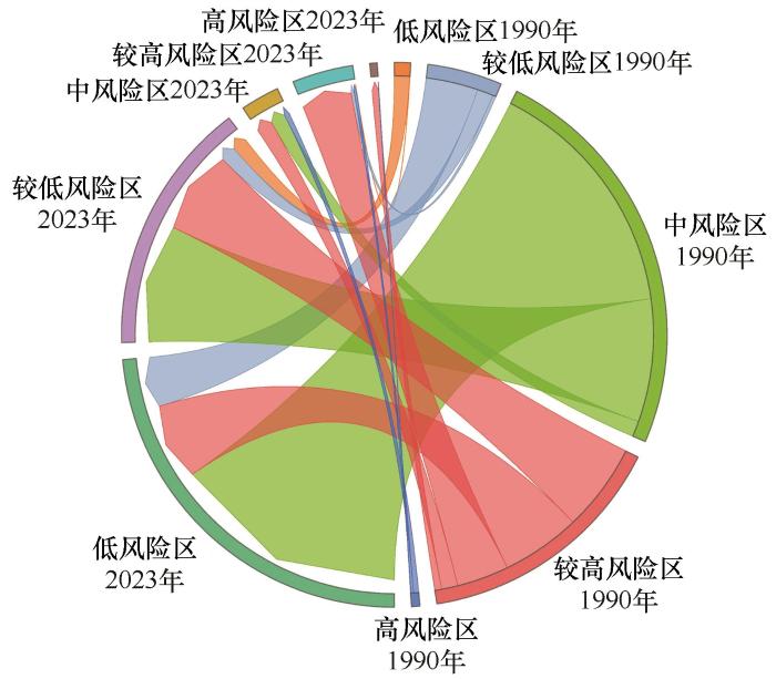 Sankey diagram of ecological risk transfer matrix from 1990 to 2023
