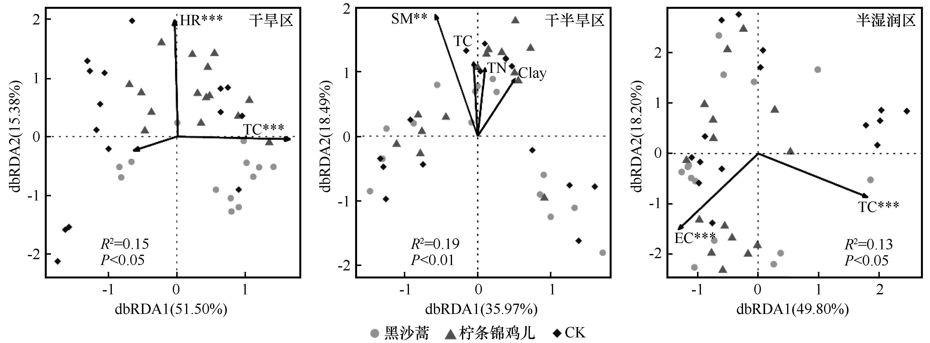 | Fig.4 Redundancy analysis (dbRDA) of the effects of environmental factors on ground-dwelling arthropods communities |