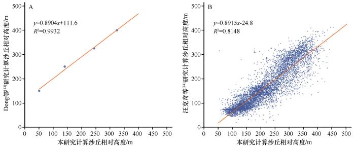 本研究在巴丹吉林沙漠计算的沙丘相对高度与前人研究结果基本保持一致,并且至少在最大沙丘的相对高度(461±10 m)方面比已有算法的结果更加接近前人实测值。