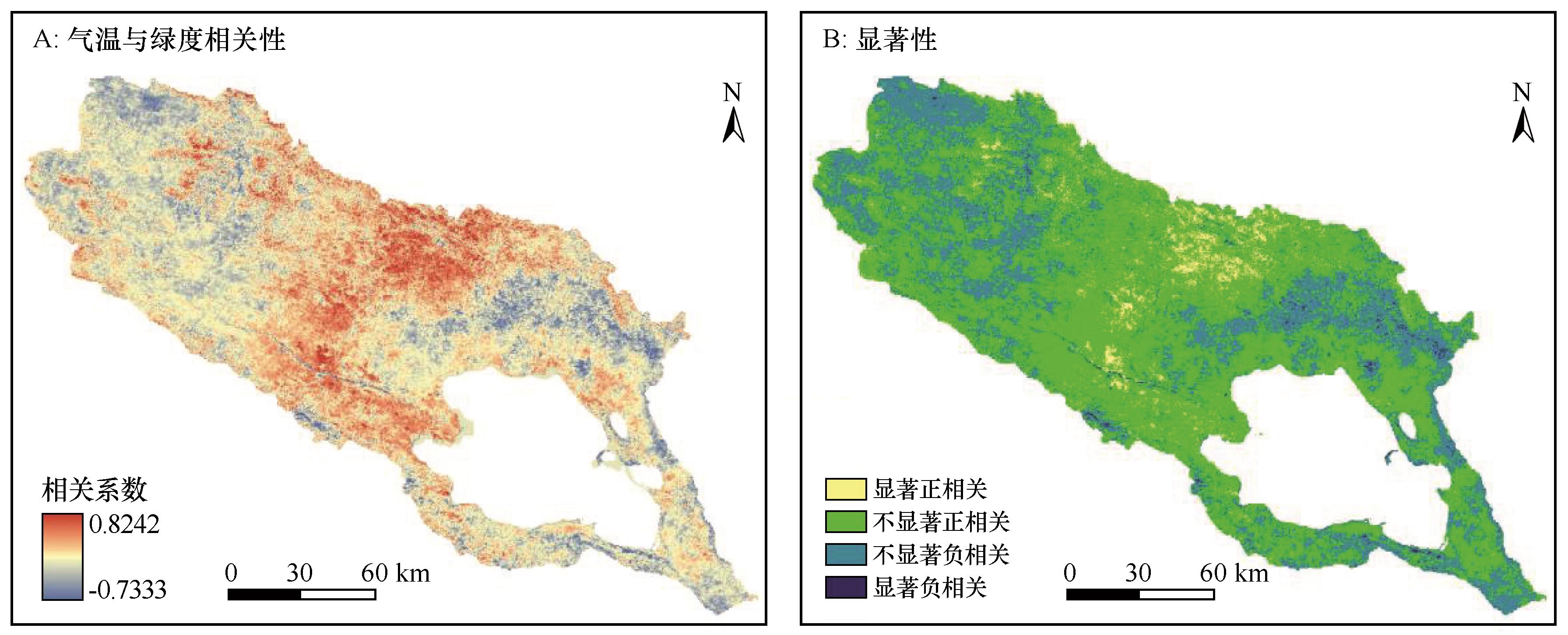 | Fig.7 Results of correlation and significance test between vegetation greenness and air temperature |