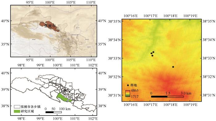 ... 实验区位于甘肃祁连山国家公园中部西水自然保护站辖区的排露沟流域,总面积2.95 hm2 ,海拔2 200~3 780 m,流域阳坡为山地草原,阴坡为青海云杉林,森林植被空间分布格局明显,在整个垂直梯度带上从高到低依次分布有高山草甸(草本和零星小灌木混生)、灌木带(高山柳和锦鸡儿混生)、乔木林(青海云杉林和祁连圆柏林)、半干旱草原、干旱草原,森林覆盖率28.6%;年均气温0.7 ℃,7月平均气温10~15 ℃,年降水量433.6 mm,年蒸发量1 081.2 mm,相对湿度60%,年日照时数1 892.6 h,日辐射总量461.41 kJ·cm-2 .研究区内以青海云杉为主要建群种,呈斑块状分布在海拔2 400~3 300 m的阴坡或半阴坡;阳坡、半阳坡主要为山地草原,伴生有小灌木.乔木林主要有青海云杉和祁连圆柏(Sabina przewalskii );灌木优势种有金露梅(Potentilla fruticasa )、箭叶锦鸡儿(Caragana jubata )、吉拉柳(Salix gilashanica )等;草本植物主要有苔草(Carex)、针茅(Stipa )、黄芪(Astragali membranaceus )、火绒草(Leon topodium )、白藜(Chenopodium album )、委陵菜(Potentilla chinesis )等[12 ] ,研究区样地环境参数见表1 . ...