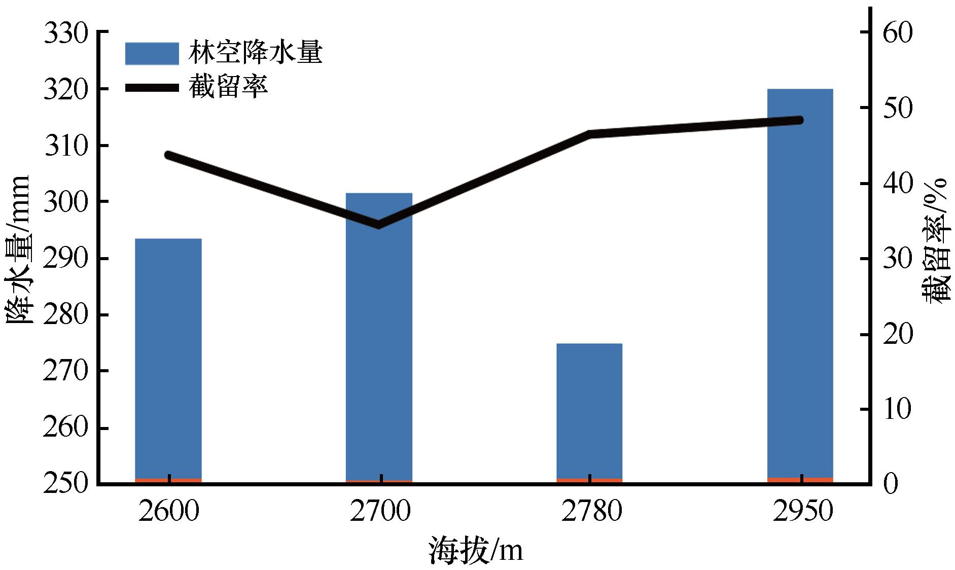| 图4 祁连山排露沟流域林空降水量、林冠截留率随海拔的变化 |