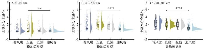 2.1 4种微地貌类型上土壤水分的分布特征