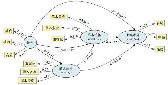 基于PLS-SEM模型的地形和植被因子对土壤水分的影响路径