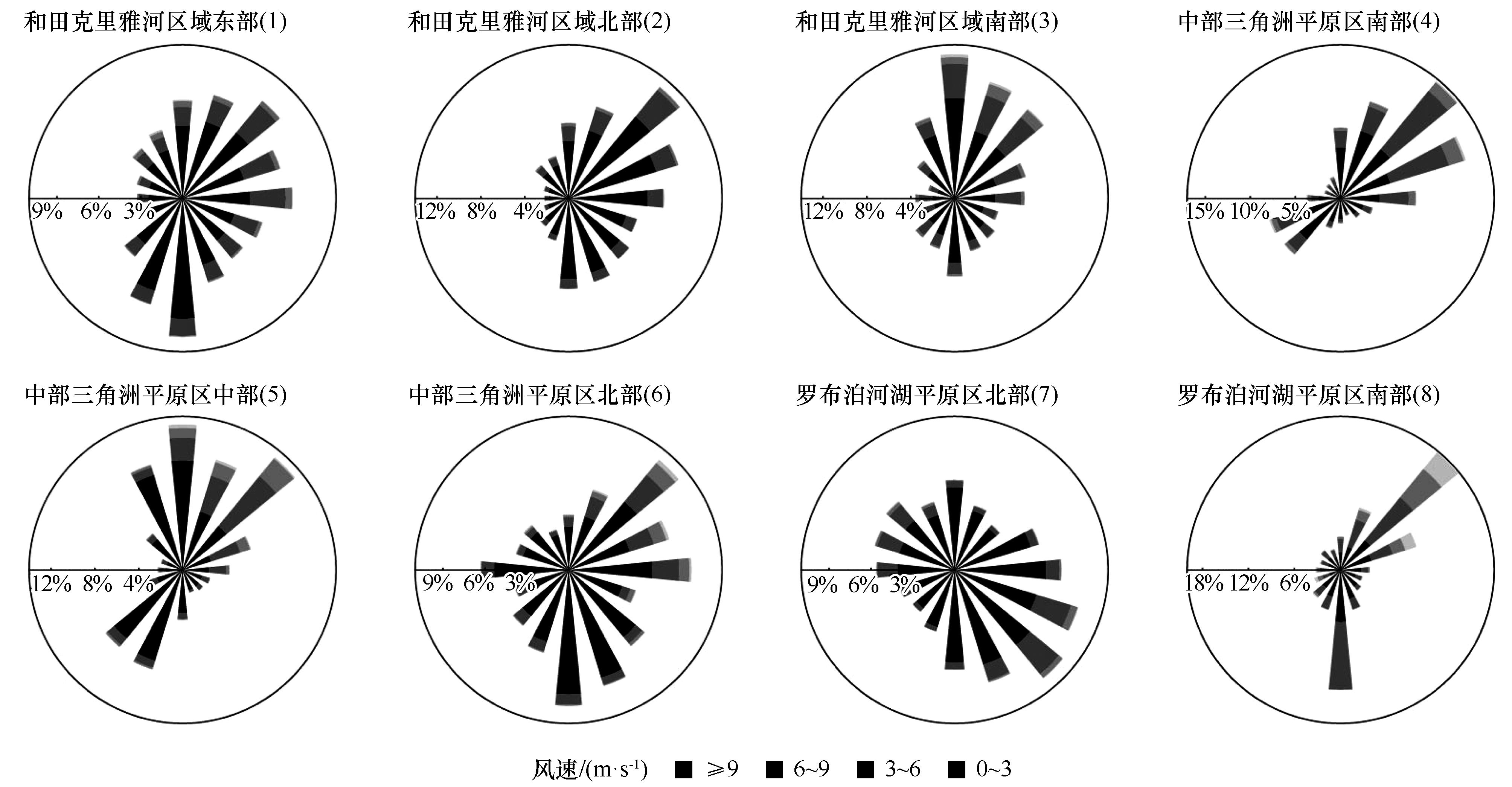 | Fig.2 Rose chart of wind direction and speed of each monitoring sites |
