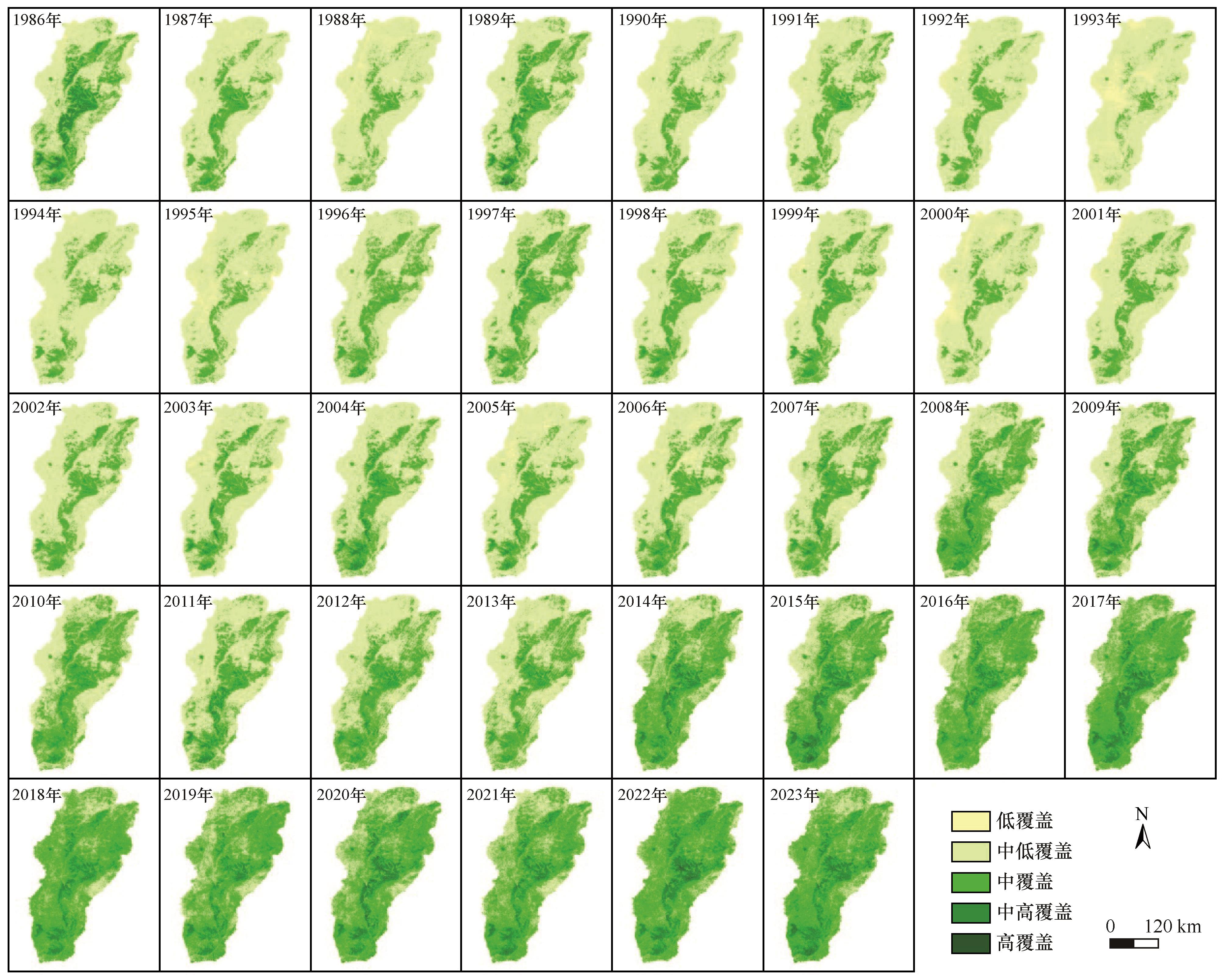 | Fig.4 Spatial distribution of vegetation cover in the Lvliang Mountain area from 1986 to 2023 |