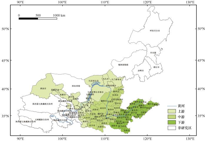以往的研究涵盖了旅游业、公共服务和生态环境3个系统,相互关系也从单向影响研究转向双向互动研究,并运用耦合协调度、协同度、VAR等计量模型,从国家、区域、省(市)域等不同尺度对协调发展程度进行定量呈现,并结合ArcGIS空间分析模块,进一步探讨其时空演化特征,在理论、方法上已臻于成熟。但多是探讨其中两两互动或再结合其他子系统,尚缺乏将旅游产业、生态环境、公共服务三者整合到统一的理论框架中,还鲜有文献论述耦合协调的影响因素;且以省域研究居多,对于城市间的比较研究还较为薄弱,与区域协调发展的现实需求存在一定偏差。此外,黄河流域的地理区位与资源优势为旅游业的发展提供了基础,推动了产业结构转型,带来了区域经济和社会效益,但是公共服务配套仍存在着有效供给不足、信息化水平低、外部保障政策不足等问题,旅游资源过度开发、公共服务体系的无序扩张、碳排放超标等造成了生态环境的严重破坏,实现旅游、生态和公共服务的协调发展对黄河流域可持续发展具有重要意义。因此,本文探究旅游、生态与公共服务协调演化时空特征及影响因素,完善三者协调演化的量化表达,为黄河流域生态保护和高质量发展提供思路与建议。