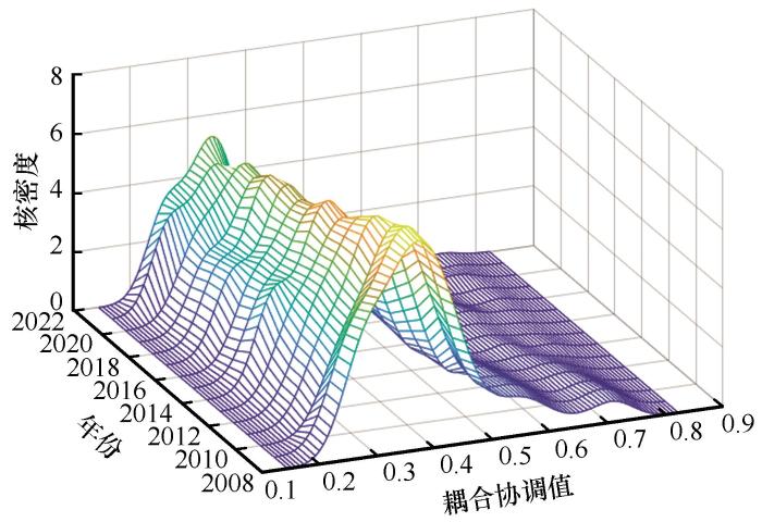 黄河流域旅游-生态-公共服务耦合协调度核密度估计