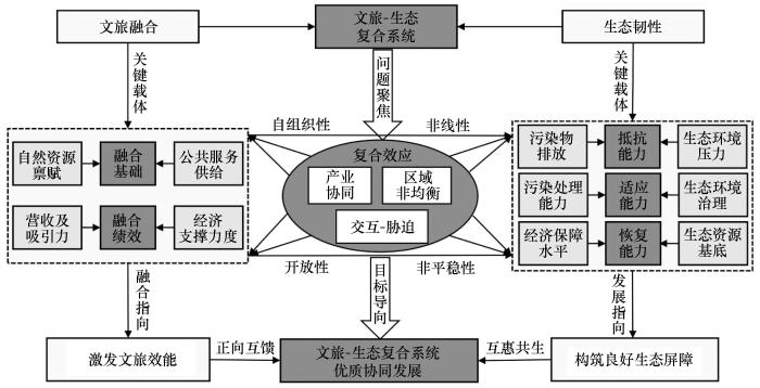 基于复杂系统理论,文旅-生态复合系统协同演化的本质是文化、生态与经济在时空维度上的重组与价值转化过程,具体表现为生态治理效能与文旅增值效应的协同提升(图1)。