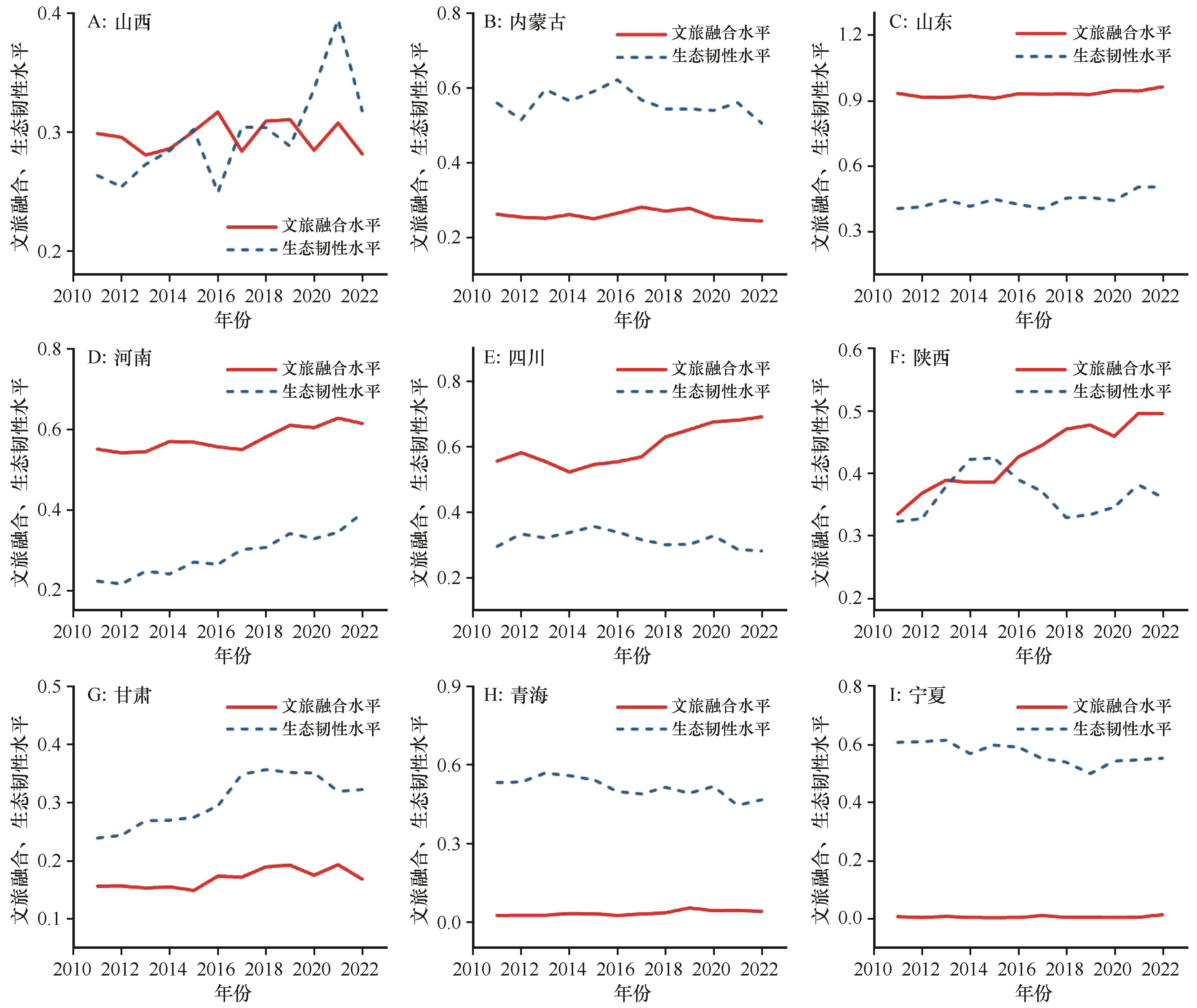 | 图2 2011—2022年黄河流域文旅融合与生态韧性水平 |