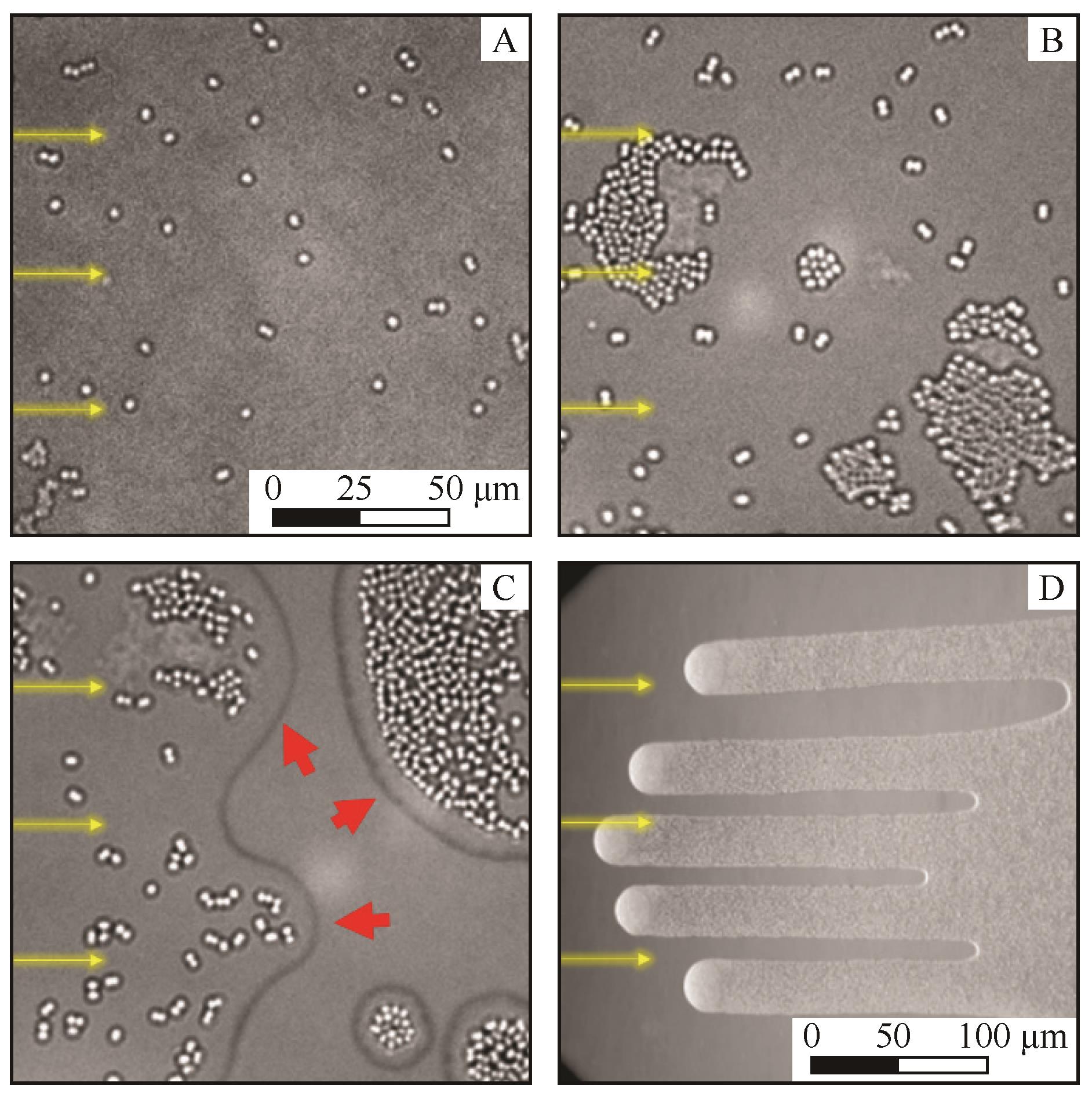 | Fig.1 Photos of Synechocystis at different movement stages under left-side light irradiation (indicated by yellow arrows)[ |