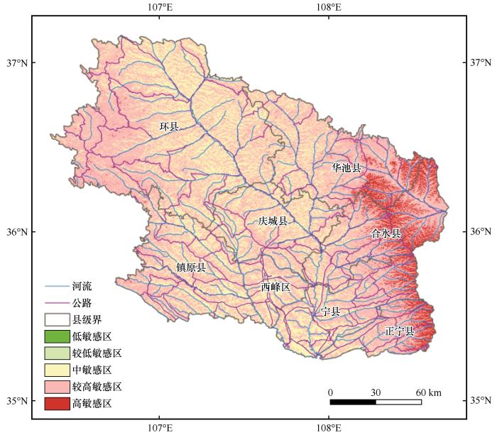 黄土高原是全球分布最广、厚度最大、地貌类型最独特的黄土堆积区,具有沟壑密布、地貌破碎、生态脆弱的典型特征。其中的高塬沟壑区由于长期的自然侵蚀与人类不合理利用,土壤退化严重、生态系统服务功能下降[3-4]。庆阳市位于黄土高塬沟壑区腹地,是典型的生态脆弱区与能源开发区叠加区域,生态环境保护压力巨大。近年来,虽然在国家一系列生态工程(退耕还林、天然林保护、“三北”防护林等)推动下,区域生态状况有所改善,但在城镇化加速、农业结构调整等背景下,土地利用方式持续变化,生态系统面临的新型风险不断显现[5-6]。因此,有必要在区域尺度上开展生态敏感性分析,明确高敏感区域分布与主导因子,为生态保护、空间管控与土地利用规划提供科学依据。