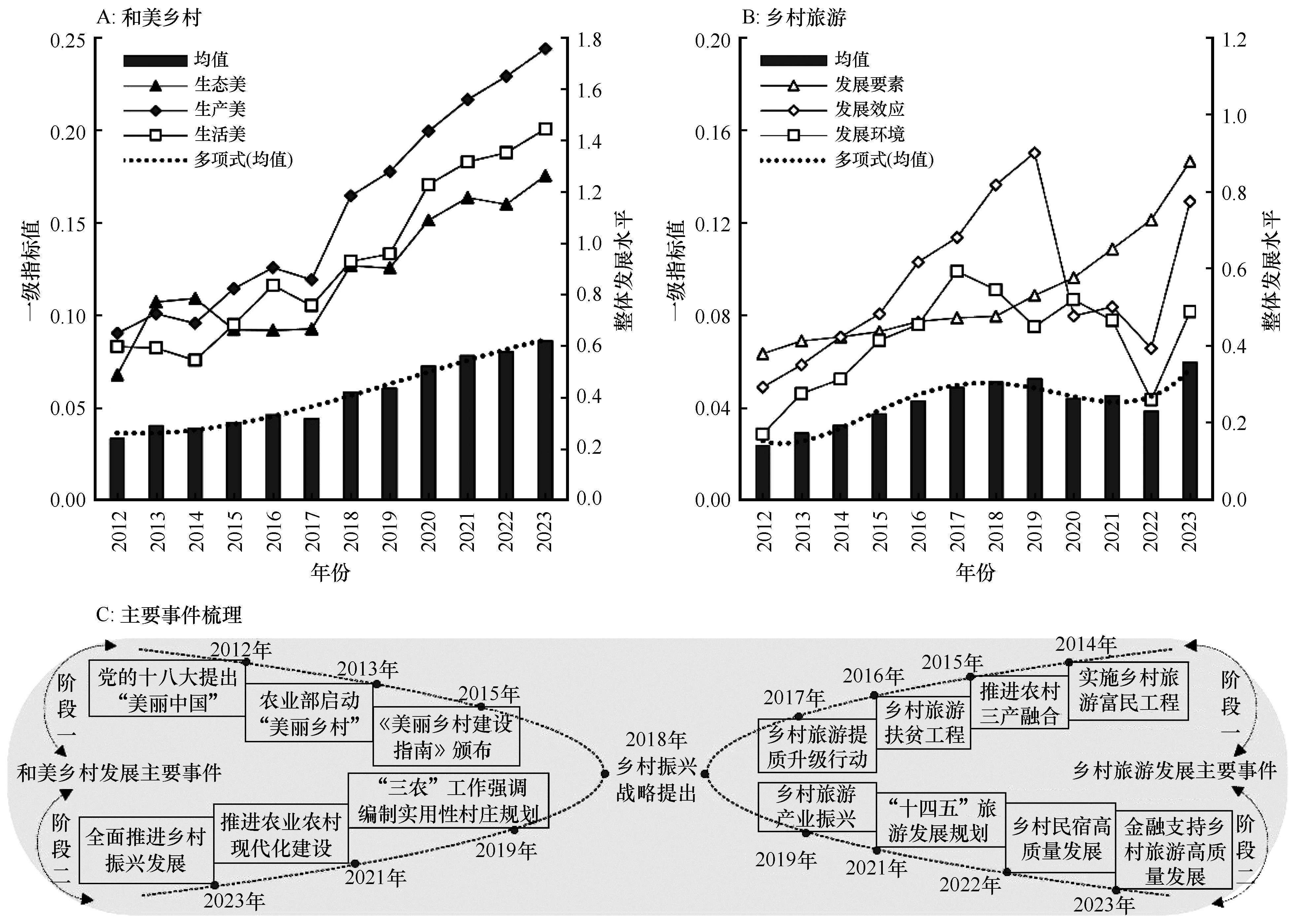 | 图2 2012—2023年和美乡村与乡村旅游发展水平 |