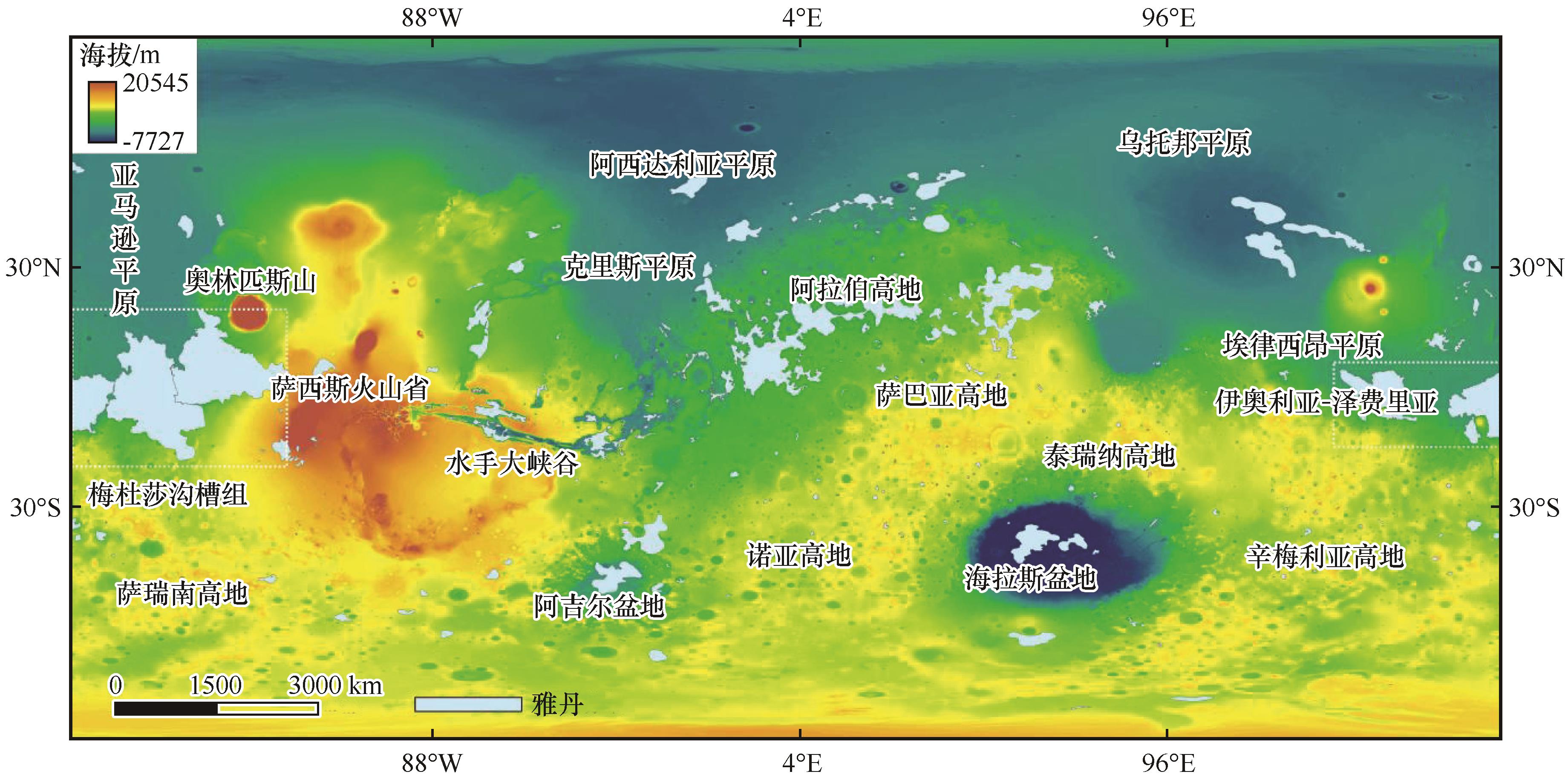 | Fig.1 Elevation map of distribution of Martian yardang landform |