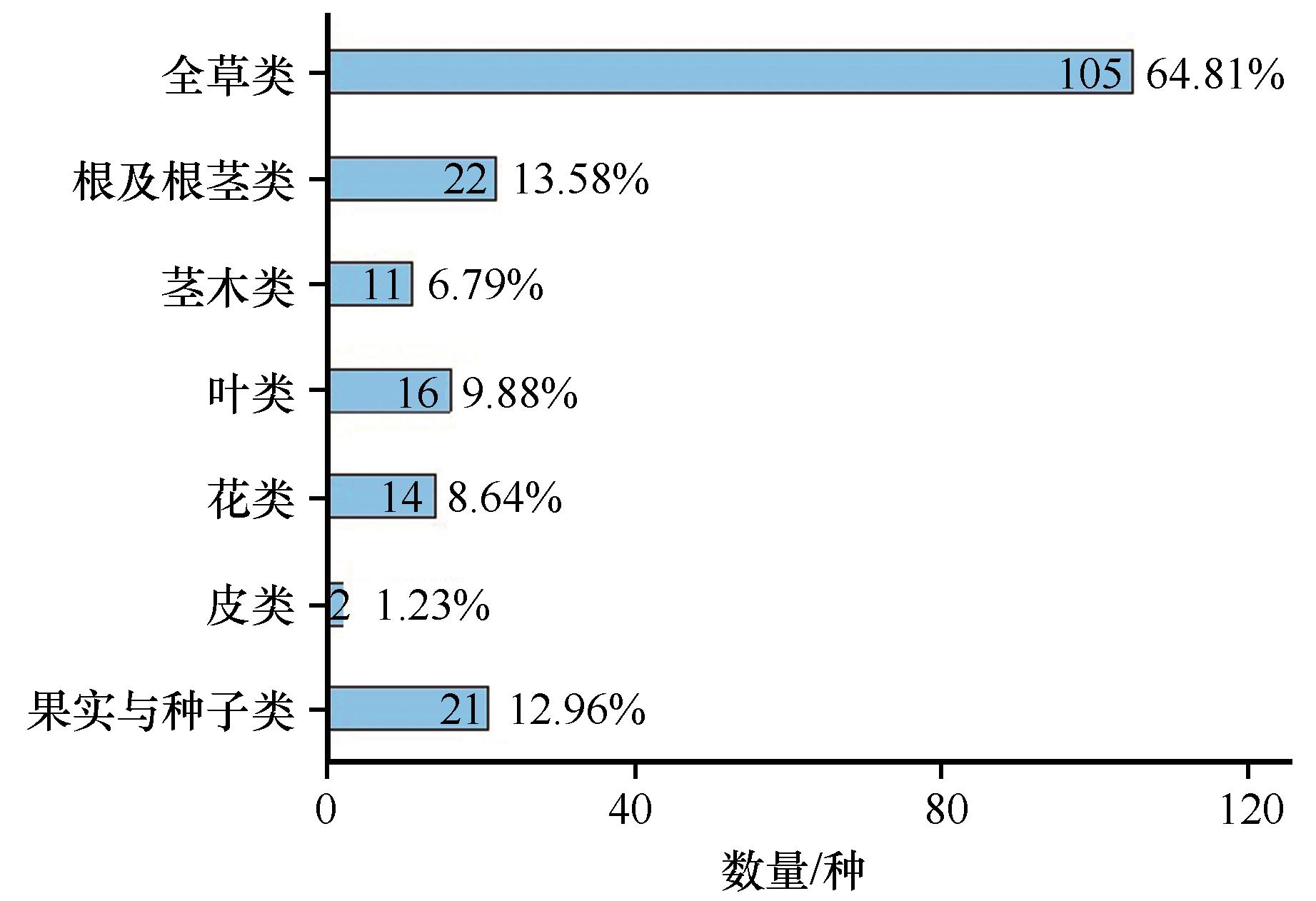 | 图3 柴达木盆地药用植物资源入药部位统计 |