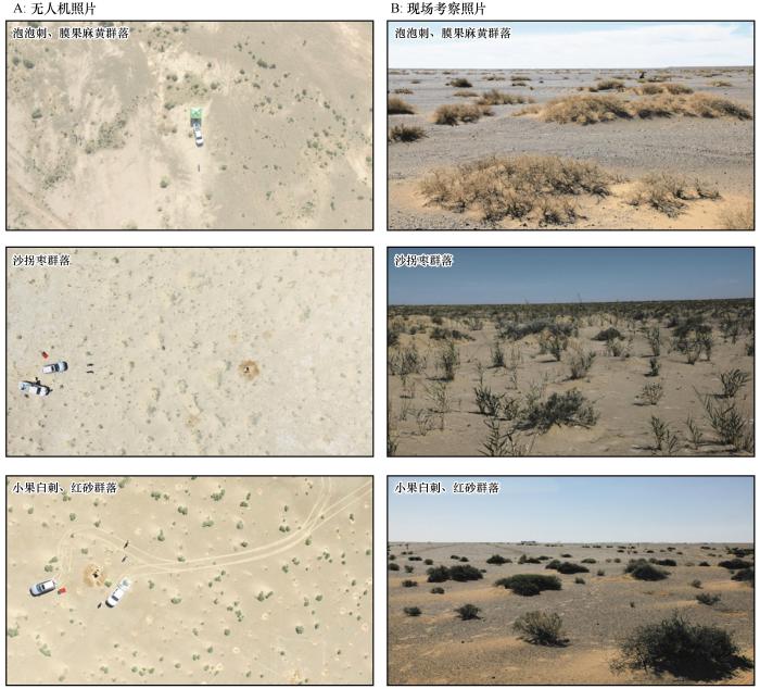 黑河是中国第二大内陆河,发源于祁连山北麓中段,流经青海、甘肃、内蒙古,尾闾注入内蒙古额济纳旗,干流长821 km,总流域面积13万km2。黑河以莺落峡和正义峡为界,划分为上游、中游和下游。上游地区降水充沛,为冰川/冻土/积雪-森林-草原景观;中下游地区降水较少、蒸发强烈,为绿洲-荒漠-湖泊景观。中游地区,绿洲和荒漠呈镶嵌分布,绿洲景观以农田为主。下游地区的额济纳绿洲是黑河末端的大型冲积扇,目前是极度干旱荒漠中的一个孤岛式绿洲,东部和东南部为面积达4.9×104 km2的巴丹吉林沙漠,西部是戈壁,北部以戈壁与蒙古国接壤,居住着蒙古、汉、回等12个民族,常住人口3.2万(图1)。该区域气候极端干旱,多年平均降水量为37 mm,多年平均蒸发量为2 240 mm,干旱指数小于0.05,多年平均气温为8.9 ℃[19]。自然条件极为严酷、生态环境极端脆弱。土地覆被以荒漠为主,其次是荒漠草原,林地和水域面积占比很小。林地为荒漠河岸林,以胡杨、柽柳及梭梭为主,皆为纯林,胡杨林边缘也常杂有少数柽柳。胡杨为阔叶树,需水较多,分布于距离河道附近,东河下游尤为茂密,额济纳胡杨林国家级保护区位于此处;柽柳之分布虽亦近水滨,但其生态幅较胡杨广,凡水分条件较好之地均能生长,胡杨林边缘也常杂有少数柽柳;梭梭林集中分布在古日乃湖滨及附近沙窝中,其他戈壁滩上也有分布。草地为荒漠草原,多以绵刺、盐爪爪、白刺、梭梭、红砂、霸王、泡泡刺、骆驼刺等小灌木为建群种(图2)。保护和恢复黑河下游额济纳绿洲的生态环境,不仅是保障国防安全、加强民族团结、促进区域经济可持续发展的需要,还是筑牢河西走廊及西北地区抵御沙尘暴的重大生态需求。
