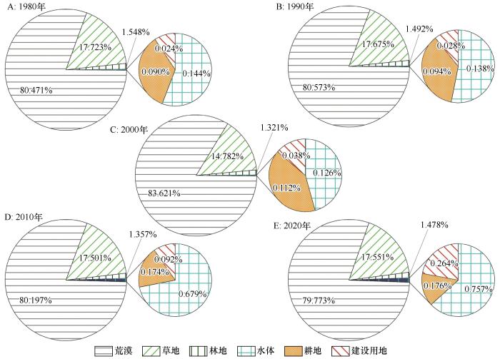 1980—2020年黑河下游额济纳绿洲土地利用/覆被变化的空间格局