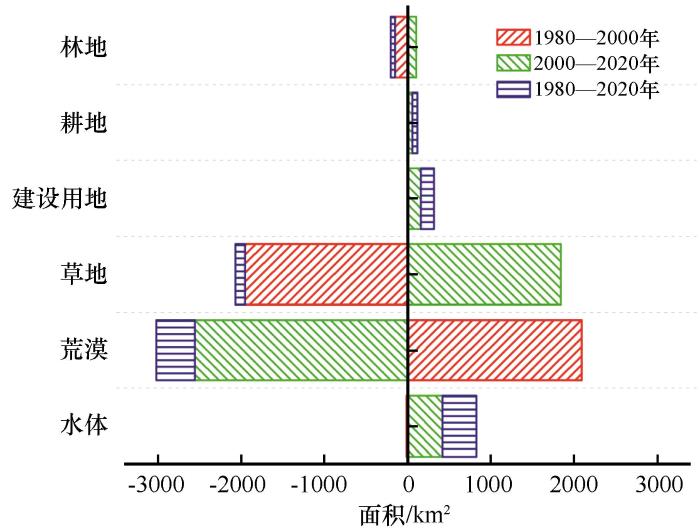 | 土地利用类型 | 1980—1990年 | 1990—2000年 | 2000—2010年 | 2010—2020年 | 1980—2000年 | 2000—2020年 | 1980—2020年 |