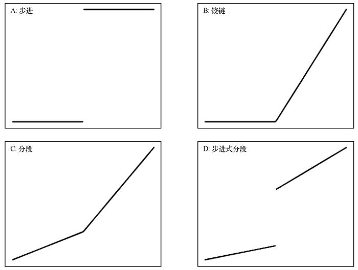 ... 为量化蒸散比-土壤水分之间的阈值,采用阈值回归模型(Threshold regression models)[36]进行识别(https://cran.r-project.org/web/packages/chngpt/).该模型包括4种模式:步进模型、铰链模型、分段模型及步进式分段模型(图1).其中,铰链和分段模型可有效识别连续变化阈值,步进式分段模型结合了步进模型和分段模型的特点,适用于大量预测变量和响应变量急剧不连续的阈值识别.因此,研究采用上述4种模型捕捉蒸散比与土壤水分之间的关系. ...