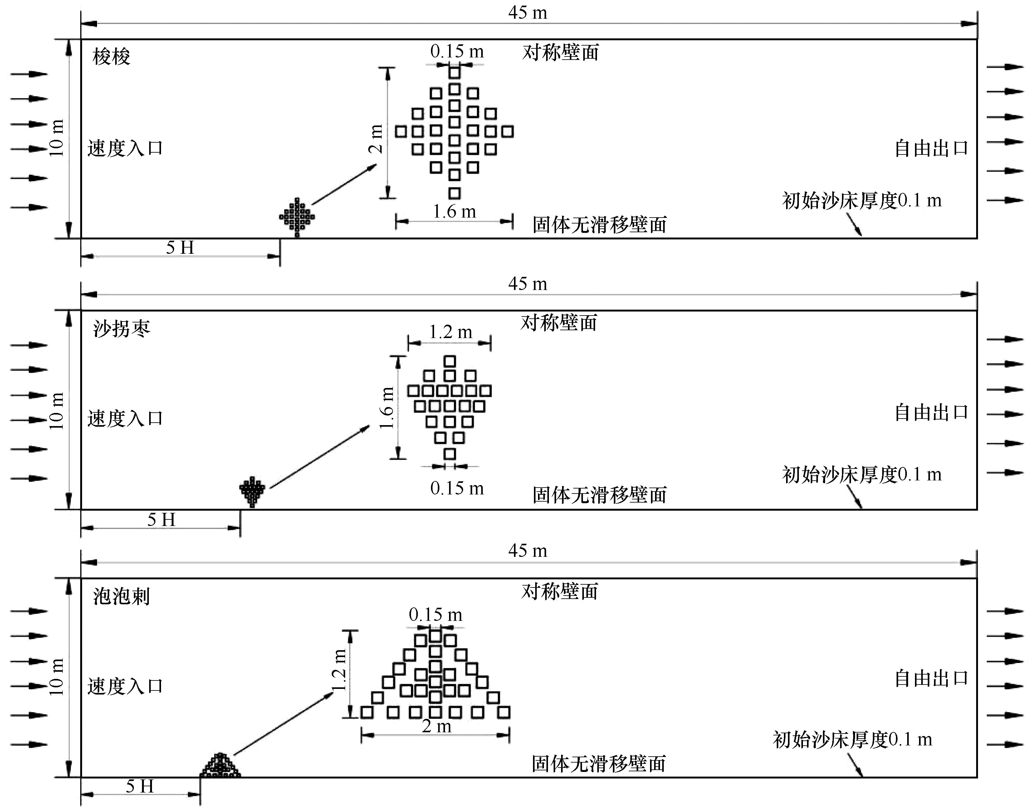Numerical simulation of wind-sand movement around typical sand-fixing plants in the middle reaches of the Heihe River desert-oasis transition zone |
