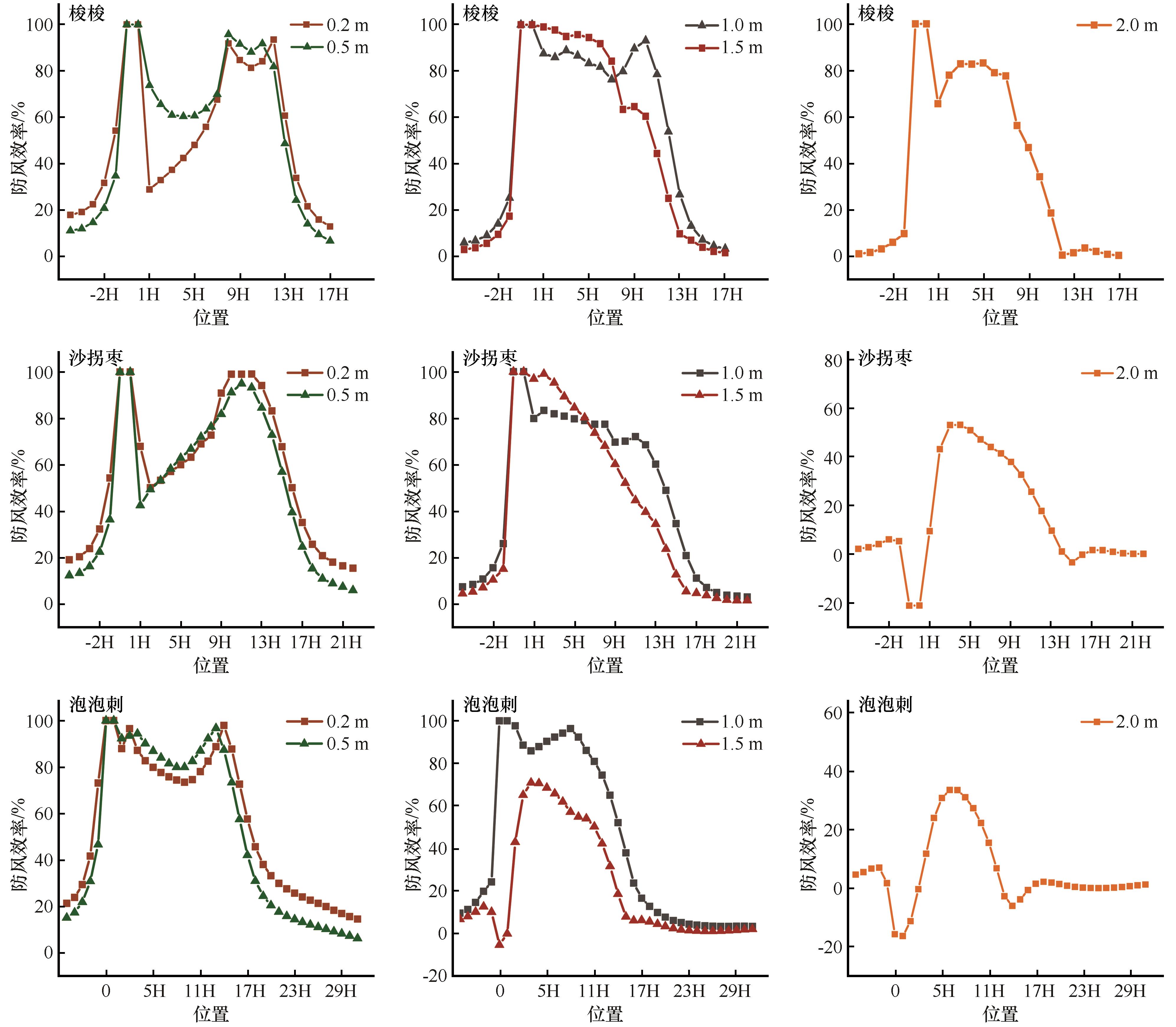 | Fig.10 Efficiency of wind protection for different monocultures |