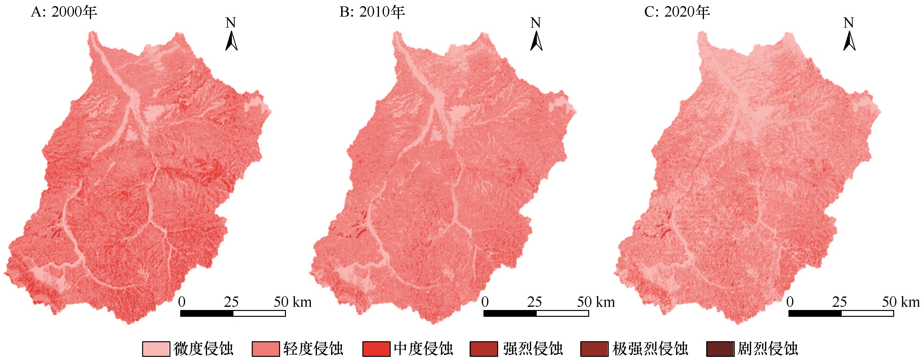 | 图2 2000—2020年祖厉河流域土壤侵蚀强度等级空间分布 |