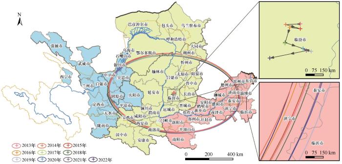 2013—2022年黄河流域生态旅游发展标准差椭圆及重心迁移轨迹