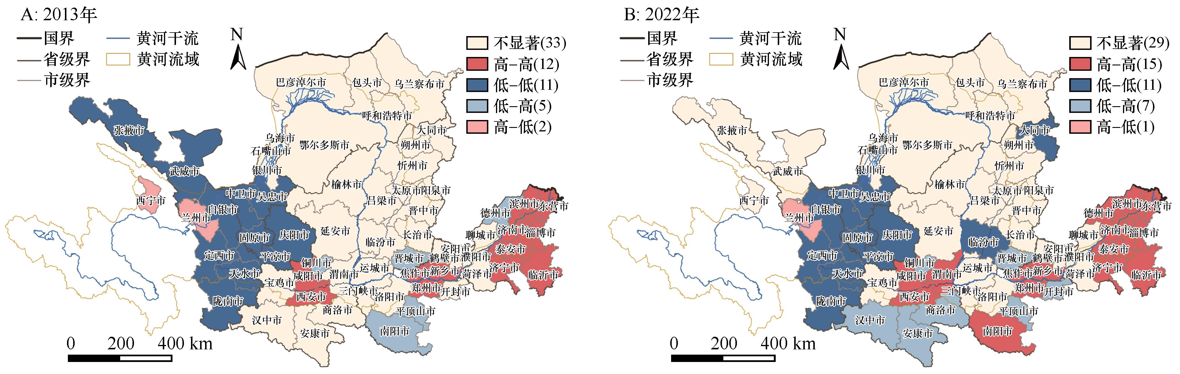 | 图4 黄河流域生态旅游发展局部关联LISA集聚 |