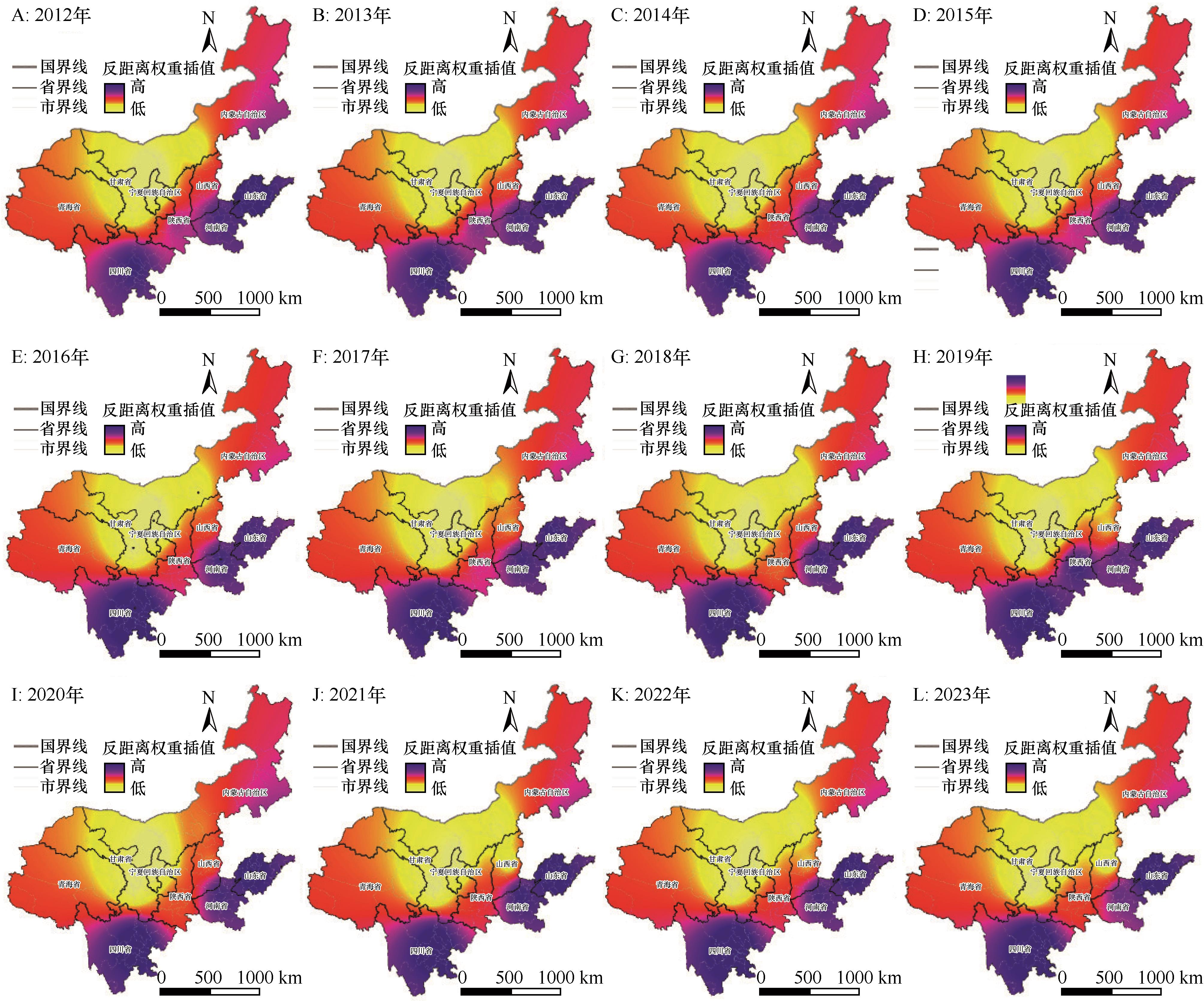 | 图3 黄河流域生态旅游网络关注度反距离权重插值 |